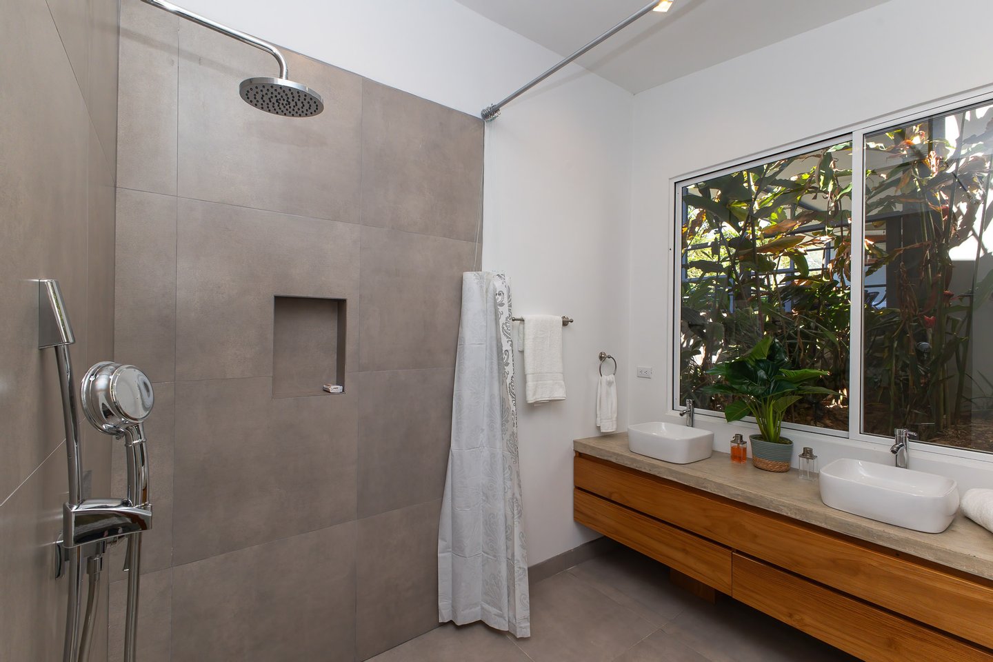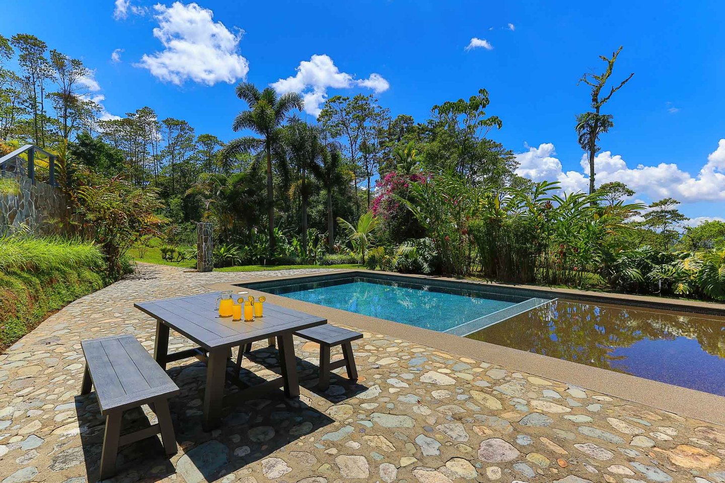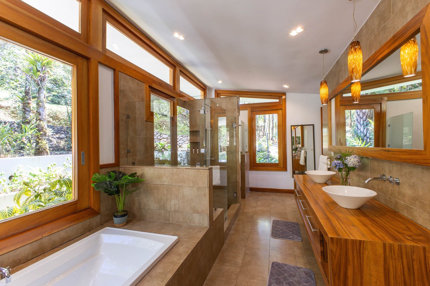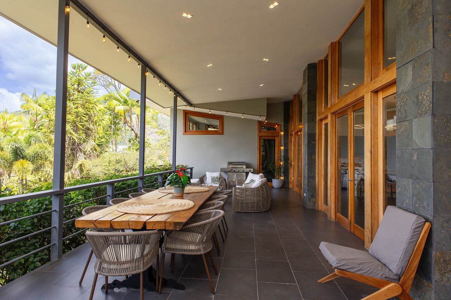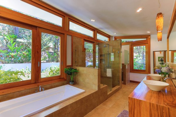 Leben im Freien: Mehrere Wohnbereiche im Freien, darunter eine geräumige überdachte Terrasse und eine große Poolterrasse, sind von üppigen tropischen Gärten umgeben und laden Sie ein, in die natürliche Schönheit der Umgebung einzutauchen.
