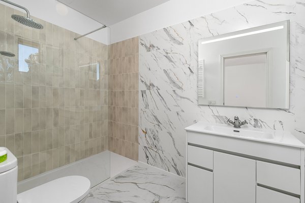 Man betritt die Wohnung und fühlt sich gleich wie zu Hause. Der Grundriss der Wohnung ist sehr gut in Form des Buchstaben L gewählt. Die Schlafzimmer und die Bäder befinden sich auf der linken Seite der Wohnung, das Hauptschlafzimmer hat ein Bad en Suite. Die offene Küche mit dem Wohn-und Essbereich findet man auf der rechten Seite.