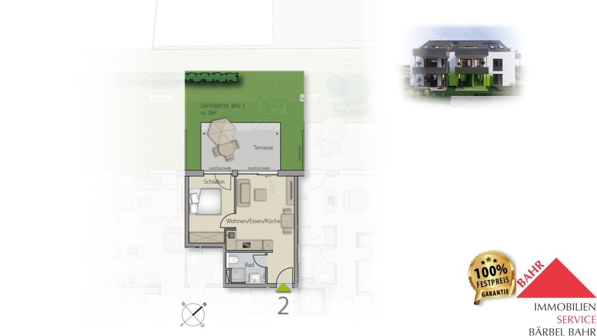 Diese moderne Erdgeschosswohnung bietet auf ca. 44 m² Wohnfläche und einem Gartenanteil von ca. 28 m² das perfekte Zuhause für Singles. Ebenso eignet sich diese ...mehr lesen