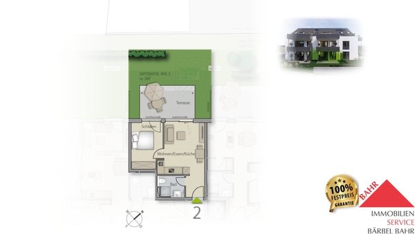 - Schöne Terrasse mit Gartenanteil von ca. 28 m²