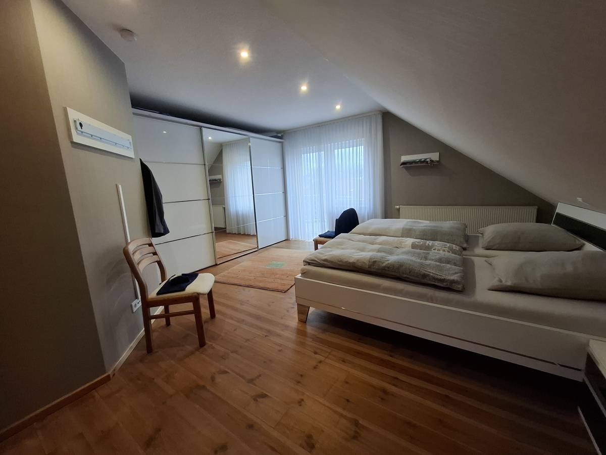 Das Treppenhaus führt über eine massive Holztreppe zum Obergeschoss, aufgeteilt in Galerie, Schlafen,/Eltern, Gästezimmer, Arbeitszimmer, Bad, und abschließend zum Dachboden. Im Kellergeschoss wurden Räume für eine Sauna, Trainingsraum und Duschbad ausgebaut . 2024 wurde bei der letzten Renovierung eine weitreichende Terrassenüberdachung angebracht. Der gepflegte Garten bietet auch dem Gartenhaus und eine Unterbringung für das Kaminholz einen nötigen Platz.
