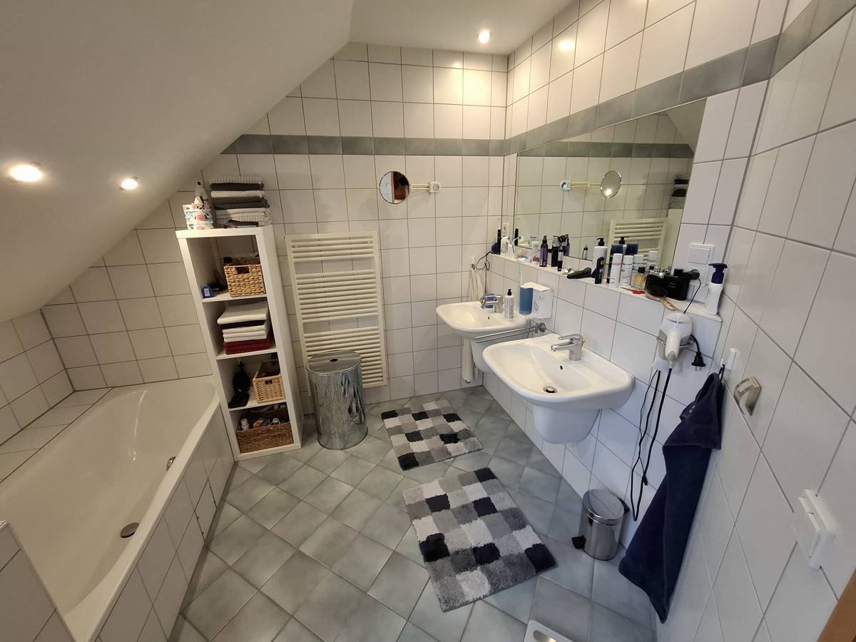 Das Kellergeschoss wurde umgebaut für einen Wellnessbereich mit Dusche, Hobby-und Trainings-Raum, auch hier sind die Fußböden mit anspruchsvollen Fliesen ausgestattet.