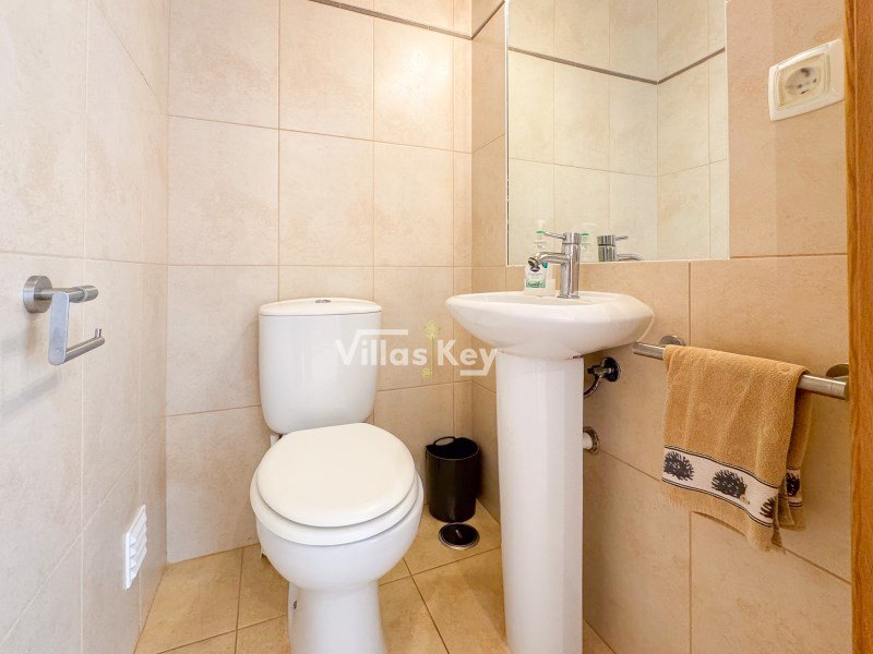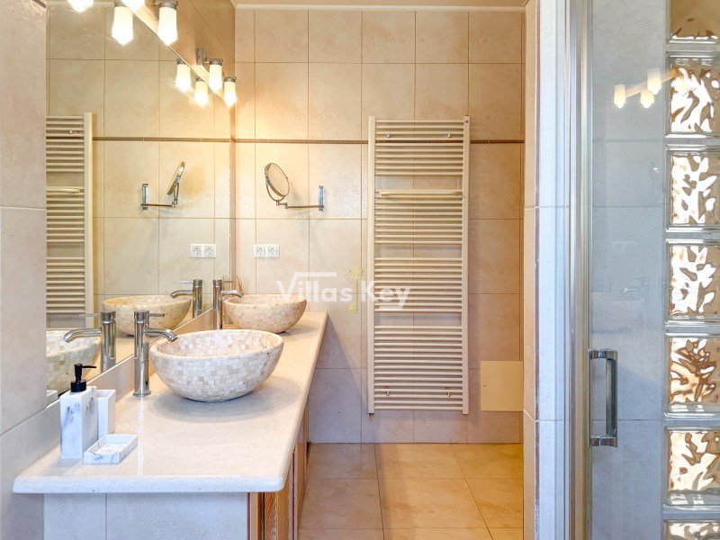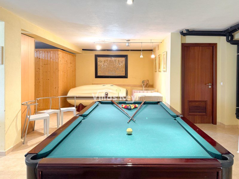 Der große Vorteil dieser Villa ist eine sehr große Garage für 2 Autos, die auch als Wäscherei, Spielzimmer, Büro, Maschinenraum mit Wärmepumpe, türkisches Bad (mit Dusche) Sauna funktioniert und leicht in eine Wohnung umgewandelt werden kann, um Freunde zu empfangen oder Hausangestellte unterzubringen.