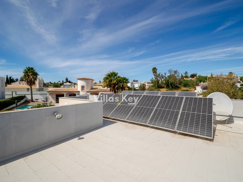 Für seine Lage bietet es alle Dienstleistungen in der Nähe, sowie den Strand von Carvoeiro. Es besteht aus 4 Schlafzimmer mit eigenem Bad sowie ein Gäste-WC. Alle Zimmer haben viel Stauraum dank der Einbauschränke.