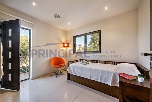 1. Stock - 2 geräumige Suiten mit Duschwanne und Zugang zum Südbalkon; 3. Suite mit Dusche, die derzeit als Büro genutzt wird. Treppe zur Terrasse im obersten Stockwerk.