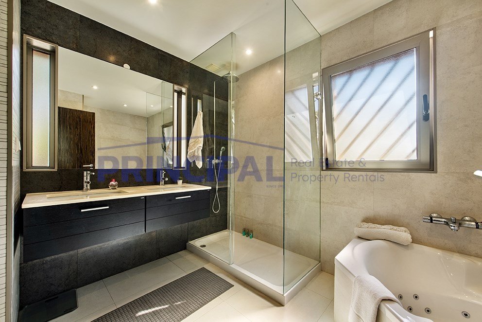 Mit hochwertigen Oberflächen ist die Villa mit Fußbodenheizung und -kühlung, Klimaanlage, Wärmepumpe, Sonnenkollektoren für Warmwasserbereitung und ...mehr lesen