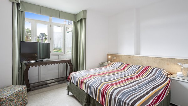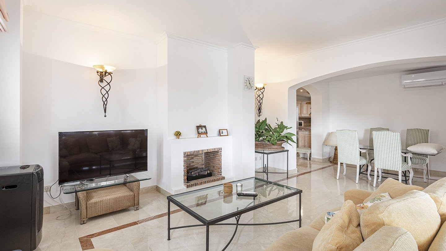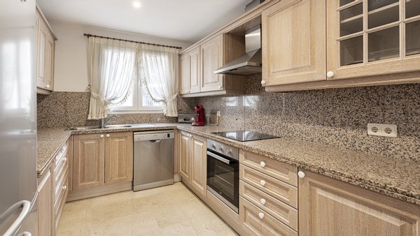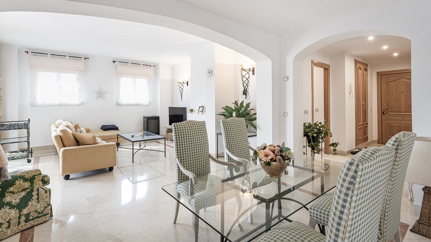 Diese stilvolle Wohnung mit einer großzügigen Wohnfläche von ca. 122?m2 besticht durch ihr offenes und lichtdurchflutetes Raumkonzept. Der weitläufige Salon mit Kamin und integriertem Essbereich schafft eine einladende Atmosphäre und öffnet sich direkt zur sonnigen Terrasse - ein idealer Ort für entspannte Stunden im Freien. Die geräumige Einbauküche ist mit neuen Elektrogeräten vollständig ausgestattet und wird durch einen angrenzenden Hauswirtschaftsraum ergänzt, der zusätzlichen Komfort im Alltag bietet. Zwei gut geschnittene Schlafzimmer sowie zwei Badezimmer (eines davon en suite) sorgen für ein angenehmes Wohngefühl auf hohem Niveau. Die Wohnung verfügt über zahlreiche Ausstattungsmerkmale, die das Gesamtbild harmonisch abrunden. Eine Klimaanlage, die sowohl im Sommer als auch im Winter für ein angenehmes Raumklima sorgt, doppelverglaste Fenster mit Blendläden, elegante Marmorböden sowie praktische Einbauschränke unterstreichen den hohen Wohnkomfort. Zudem stehen SAT-TV, Telefon- und Glasfaseranschluss, eine Gegensprechanlage sowie ein Aufzug zur Verfügung. Die mediterran angelegte Wohnanlage präsentiert sich in einem sehr gepflegten Zustand und wird von einem schönen Gemeinschaftsgarten mit Palmen und üppiger Bepflanzung umgeben. Zwei großzügige Pools und weitläufige Terrassenbereiche laden an heißen Sommertagen zum Sonnenbaden, Schwimmen und Entspannen ein. Abgerundet wird dieses attraktive Immobilienangebot durch einen im Preis enthaltenen PKW-Stellplatz, der zusätzlichen Komfort und Bequemlichkeit bietet.