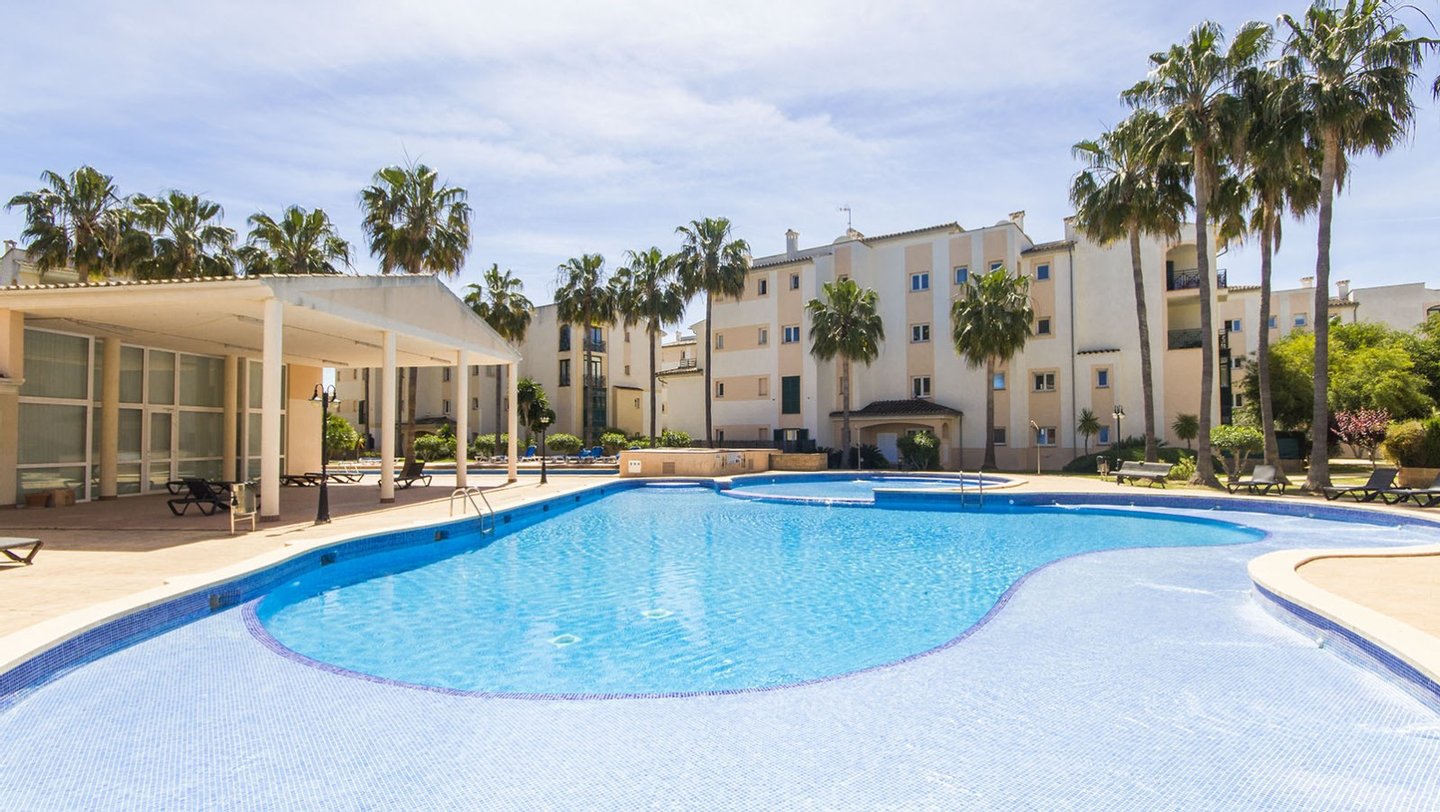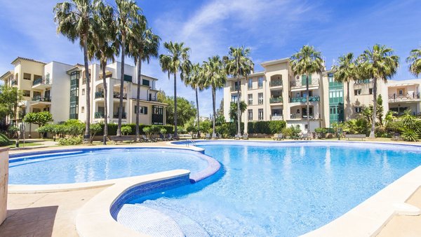 Mallorca Immobilien: Dieses charmante und großzügige Apartment befindet sich in einer begehrten Wohnanlage in fußläufiger Entfernung zum wunderschönen Sandstrand von Santa Ponsa im Südwesten Mallorcas.