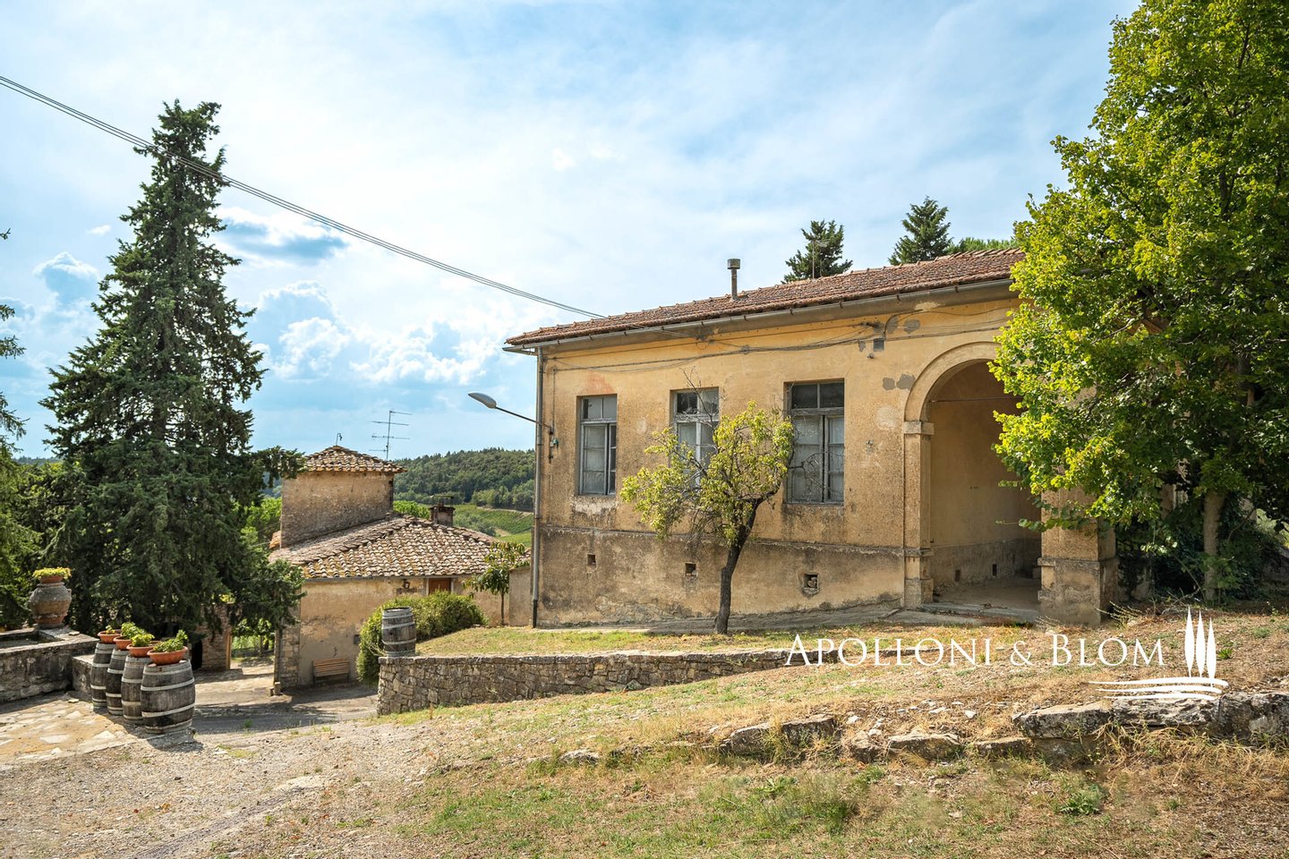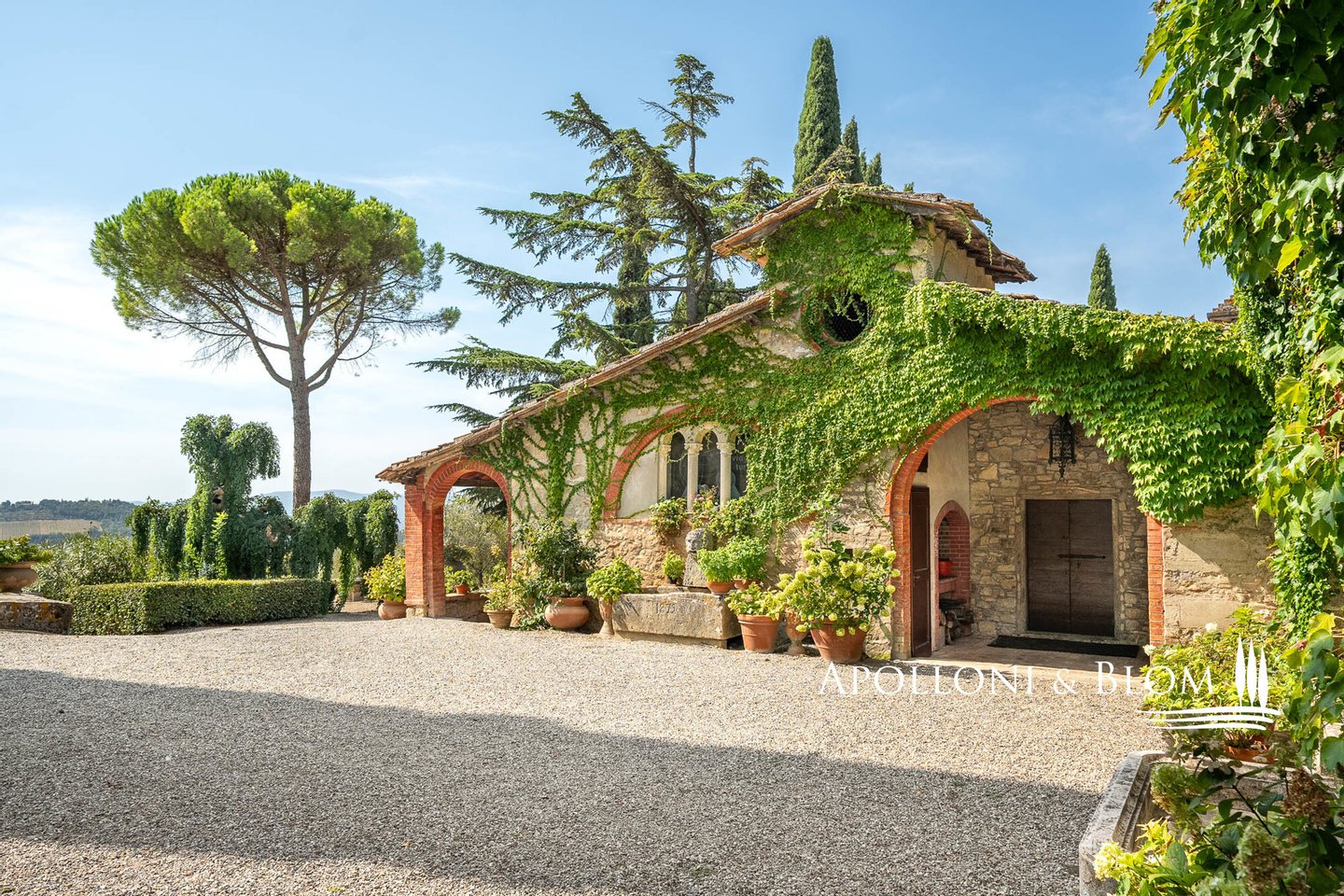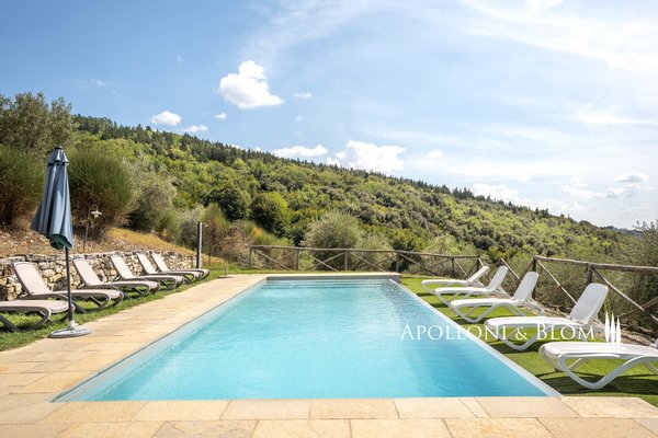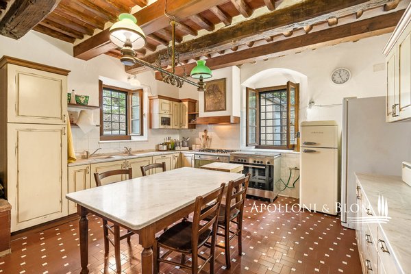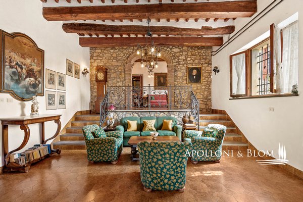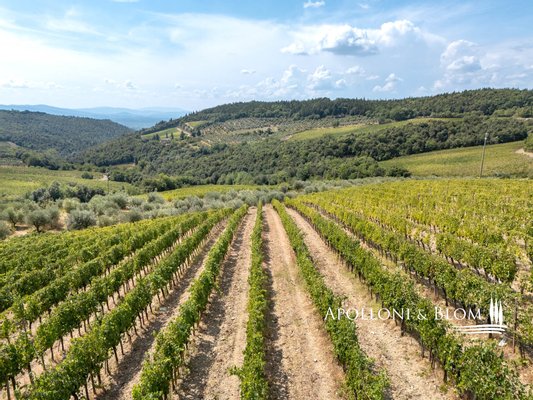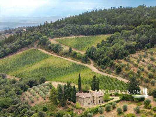 Art: 160 Hektar Landgut im Chianti Classico-Gebiet mit 4431 m² bebauter Fläche, bestehend aus einer dreistöckigen Hauptvilla mit Turm von 935 m², einem Park mit Swimmingpool, einer Kapelle, zu Gästequartieren umgebauten Bauernhäusern mit zweitem Swimmingpool, Nebengebäuden, Garagen und einem Weiler mit Gebäuden, die die Weinbereitungsanlage und das Firmenzentrum bilden