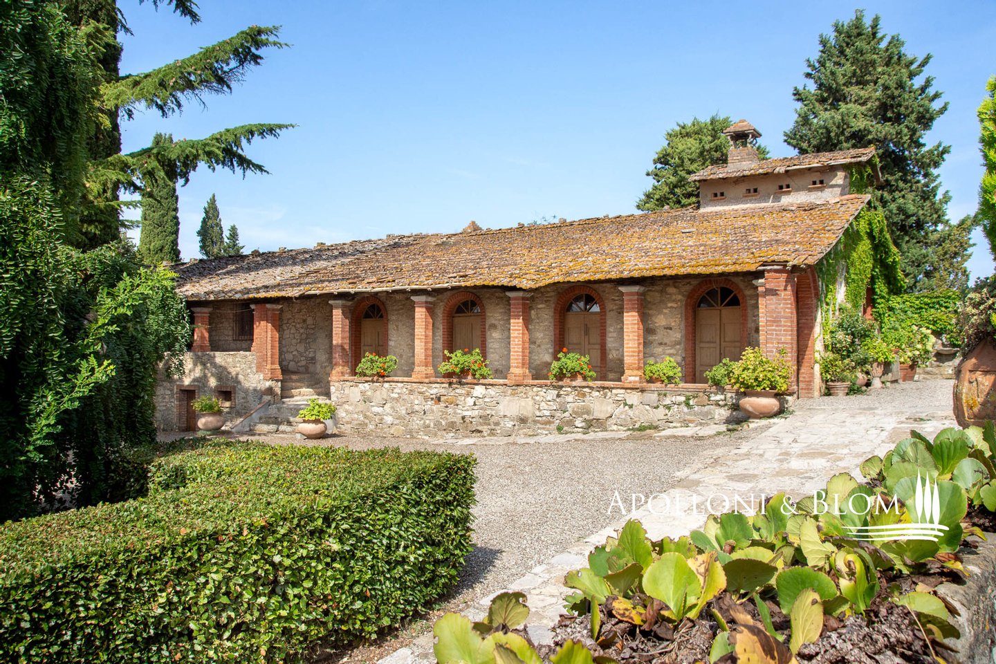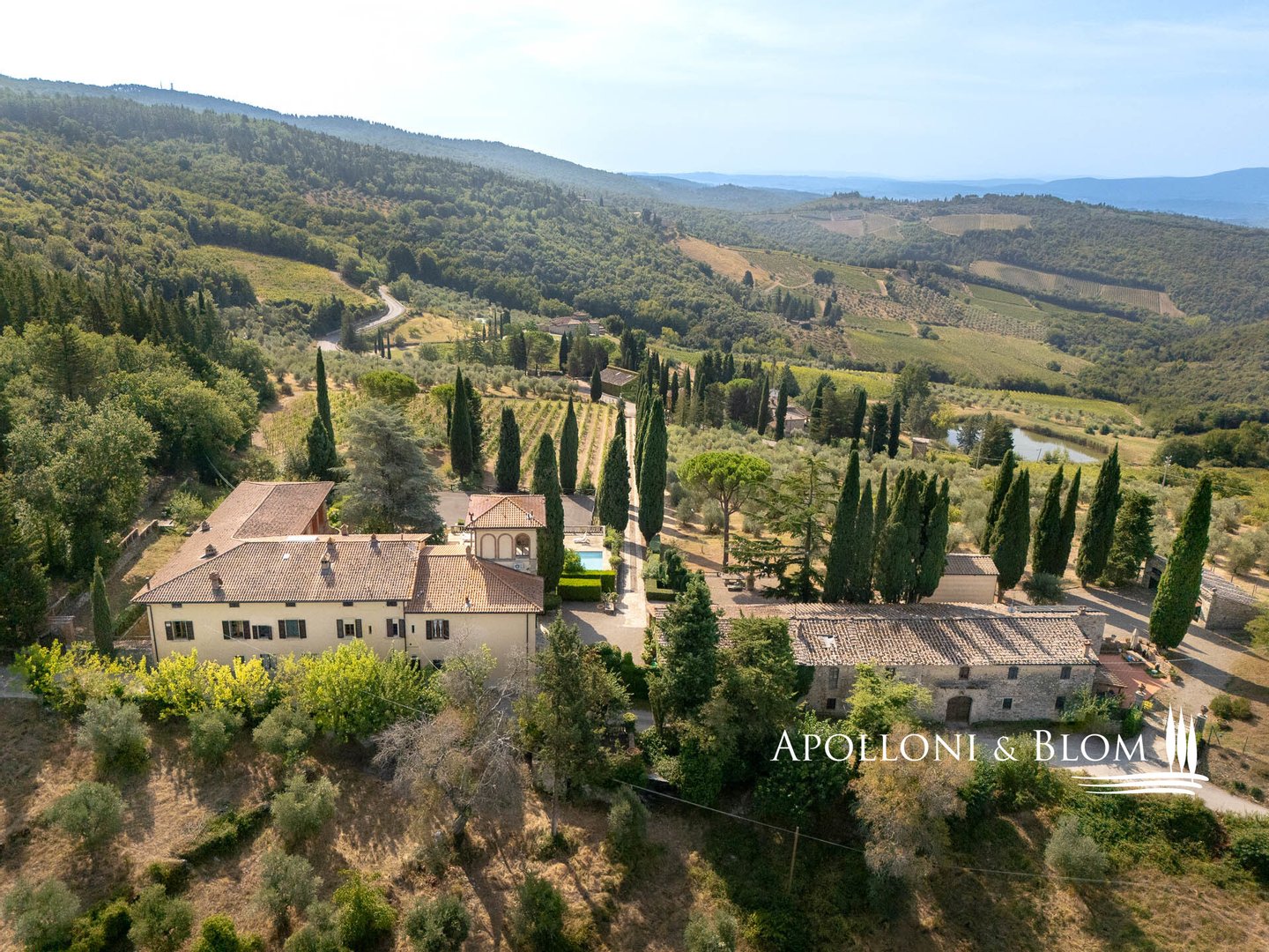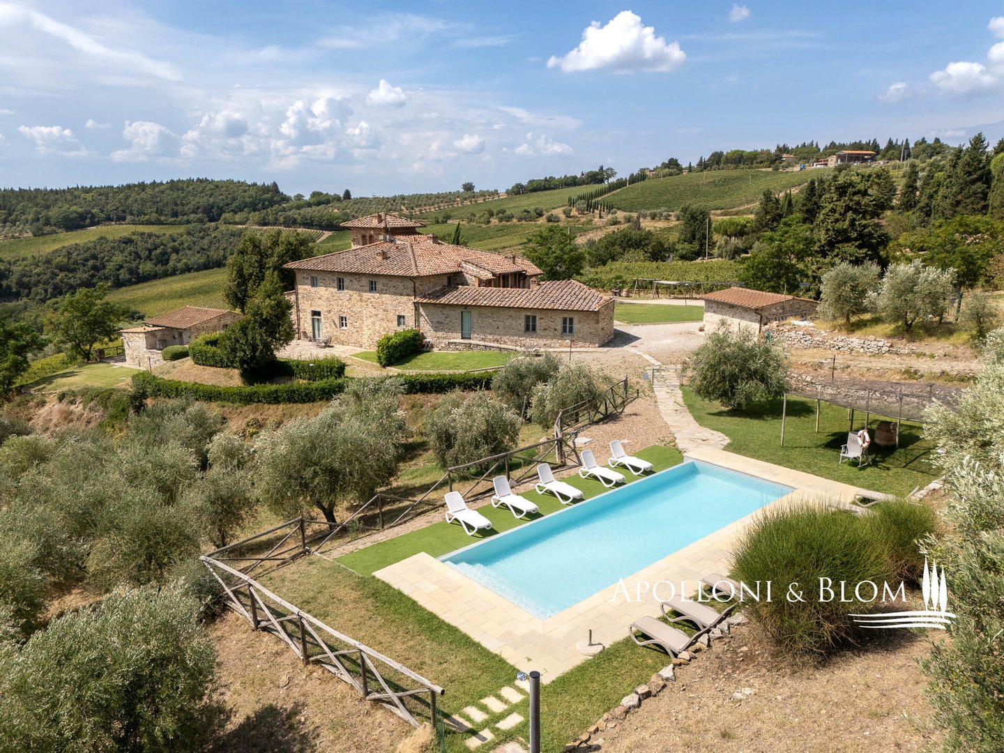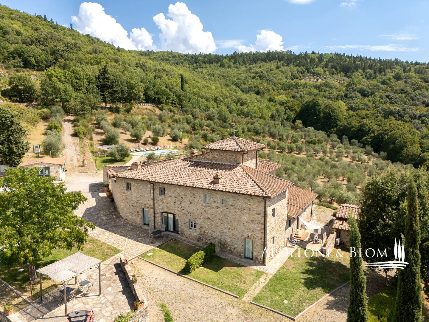 Art: 160 Hektar Landgut im Chianti Classico-Gebiet mit 4431 m² bebauter Fläche, bestehend aus einer dreistöckigen Hauptvilla mit Turm von 935 m², einem Park mit Swimmingpool, einer Kapelle, zu Gästequartieren umgebauten Bauernhäusern mit zweitem Swimmingpool, Nebengebäuden, Garagen und einem Weiler mit Gebäuden, die die Weinbereitungsanlage und das Firmenzentrum bilden