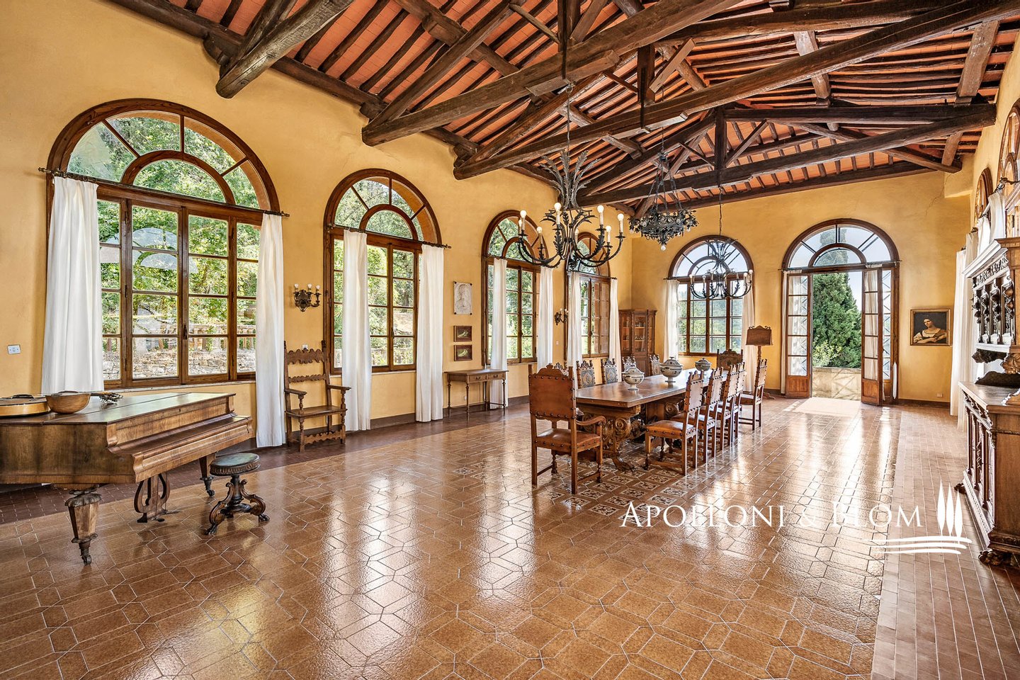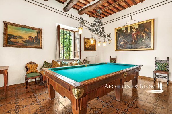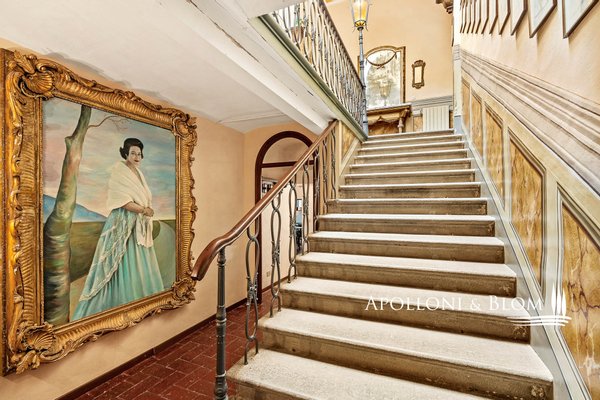 160 Hektar mit historischer Villa, Park, Turm, Kapelle, 2 Schwimmbäder, Bauernhof mit Bauernhäusern, Weinkeller, Ölmühle, zu verkaufen in Castellina in Chianti, Siena. Das Anwesen liegt 450 m über dem Meeresspiegel und bietet einen atemberaubenden Blick auf die Chianti-Hügel. Das aus dem 17. bis 18. Jahrhundert stammende Herrenhaus ist von 160 Hektar Anbaufläche umgeben, darunter Weinberge mit einer Jahresproduktion von ca. 110.000 Flaschen Chianti Classico Gallo Nero DOCG. Eine klassische Zypressenallee führt zum Park, der mit Springbrunnen, Belvedere-Terrassen, Balustraden und Travertin-Kolonnaden gestaltet ist. Hier befindet sich ein Swimmingpool mit spektakulärem Blick auf die Weinberge, der von der prächtigen Fassade der Villa im Vanvitelli-Stil mit Turm, Säulengang, großen Glasfenstern, Bogenfenstern und Steinverzierungen aus der Renaissance überragt wird. Das Innere bietet elegante und helle Räume: eine Halle mit Haupttreppe und schmiedeeiserner Balustrade, drei Salons, zwei Speisesäle (einer davon mit einer Deckenhöhe von über sechs Metern), ein Billardzimmer, ein Arbeitszimmer mit Bibliothek und acht Schlafzimmer, alle mit eigenem Bad. Im Park befindet sich eine hübsche kleine Kirche mit einer geweihten Kapelle, die für private Zeremonien genutzt wird. Nicht weit davon entfernt befindet sich ein Bauernhaus aus dem 15. Jahrhundert, dessen steinerne Bauernhäuser in 11 Wohnungen und eine Villa mit insgesamt 24 Zimmern umgewandelt wurden, die als Unterkünfte für Touristen im Landhausstil genutzt werden und über einen zweiten Swimmingpool verfügen. Ein Weiler aus dem 14. Jahrhundert ist das Herzstück des Landguts: Er beherbergt eine Weinkellerei mit hochmodernen Weinbereitungsanlagen, Eichenfasskellern, Verkostungsräumen, einem Laden, Büros, einer Ölmühle und landwirtschaftlichen Nebengebäuden. Das Land, das nach toskanischer Tradition bewirtschaftet wird und zu 100% biologisch zertifiziert ist, umfasst 19,4 ha DOCG-Weinberge, 21 ha Olivenhaine mit 5.500 Bäumen, einen privaten See, 105 ha Wald, Obstgärten und Ackerland.