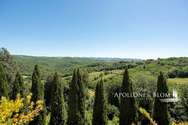 Über 100 Hektar im Herzen des Chianti Classico, Weinberge, Weinkeller und historische Villa mit Weiler und Bauernhof zu verkaufen nördlich von Siena. In der Nähe des Dorfes Vagliagli, nur 10 km von Siena entfernt, umfasst das Anwesen 102 Hektar, zwischen den Gemeinden Radda in Chianti und Castelnuovo Berardenga, sanften Hügeln, Tälern und einem 10.000 qm großen See auf dem Grundstück. Die Weinberge erstrecken sich über 28,5 Hektar, mit der Erlaubnis, weitere 7 Hektar neu zu bepflanzen, und jeder hat sein eigenes einzigartiges Terroir: eine Kombination aus Boden, Höhe und Lage, die zu Weinen von außergewöhnlicher Komplexität führt. Das Weingut befindet sich seit 2021 in der biologischen Umstellung, wobei die endgültige Zertifizierung für 2024/2025 geplant ist, und produziert derzeit etwa 130.000 Flaschen feinen Chianti Classico DOCG (4 Etiketten) und IGT (6 Etiketten), die alle für ihren authentischen Ausdruck des Terroirs mit hervorragenden Auszeichnungen von JamesSuckling bis Wine Hunter und Decanter belohnt wurden. Die Weine sind auch in den renommiertesten Weinführern wie Slow Wine, Veronelli, Weinwisser und Bibenda vertreten. Über 2000 Quadratmeter auf drei Ebenen sind dem Weinkeller gewidmet, ausgestattet mit internen Aufzügen, Zugang für landwirtschaftliche Fahrzeuge, Klimaanlage, Reifungsräumen und Fässern, von Stahl bis Holz, in einer Kombination aus Aromen und antiker Atmosphäre. Die jahrhundertelange Geschichte dieses Ortes wird im Herrenhaus bewahrt, das auf den Mauern einer mittelalterlichen Festung erbaut wurde, von der noch die Bastionen, einige Türme und die steinerne Zugangsbrücke aus dem Jahre 1400 erhalten sind. Nach jahrhundertelangen Kämpfen wurde es später in einen Ferienort mit einem eleganten Palast umgewandelt, in dem der toskanische Adel die Sommermonate dank des fantastischen Mikroklimas des stets gut durchlüfteten Chianti Classico in der Kühle verbringen wollte. Um die Villa herum befinden sich die Wirtschaftsgebäude mit Bauernhäusern im typisch toskanischen Stil. Eines davon wurde mit 8 Suiten renoviert, eines davon als Verkostungsraum, während sowohl die Villa als auch die anderen Gebäude insgesamt renovierungsbedürftig sind. Insgesamt handelt es sich um eine Fläche von ca. 2.500 Quadratmetern, die sowohl für ein Landresort als auch für eine Privatresidenz geeignet ist, ideal für Empfänge, Feste, Veranstaltungen und Ferien inmitten von Weinbergen und toskanischer Natur. In einer diskreten und zurückhaltenden Gegend, erreichbar über eine private Zufahrt von 750 Metern, nur wenige Minuten von Geschäften, historischen Zentren und nur 45 Minuten südlich von Florenz entfernt.