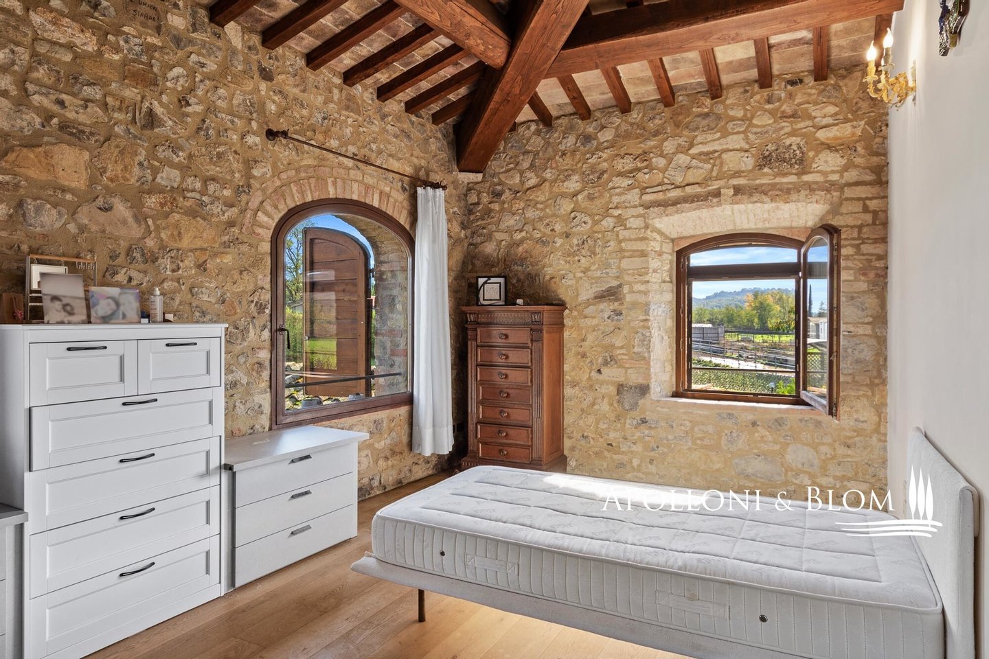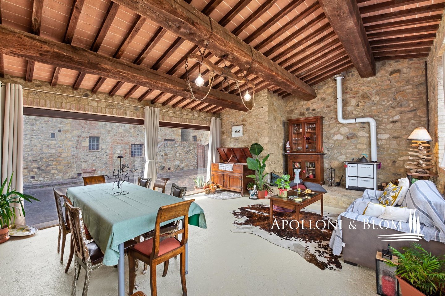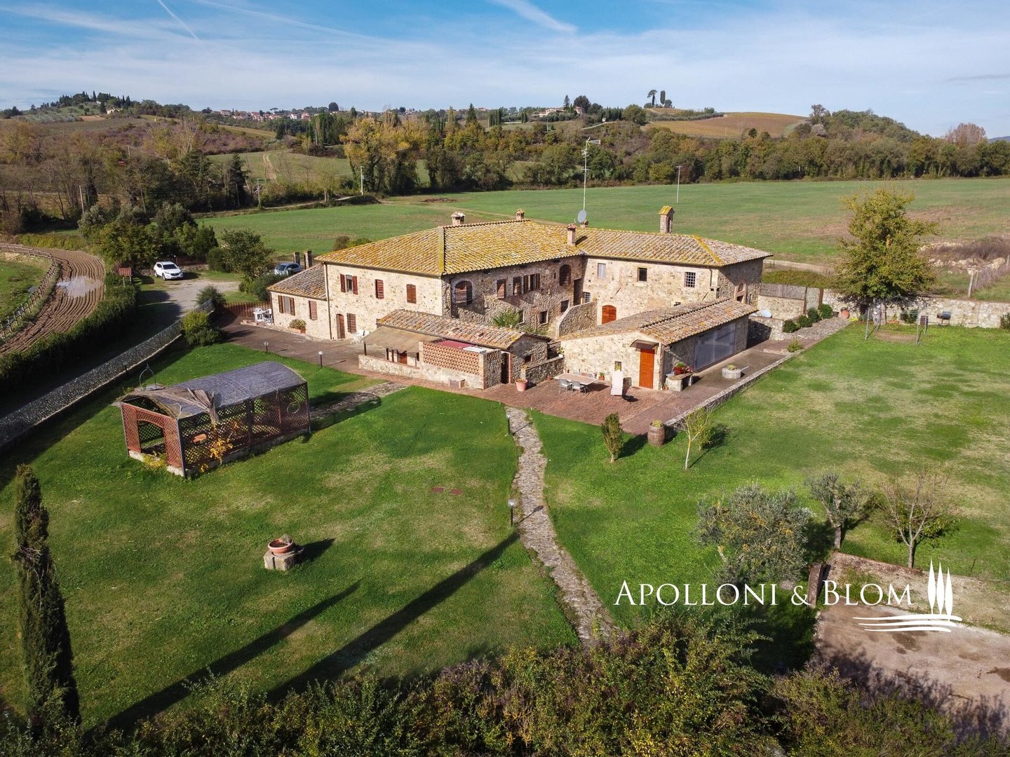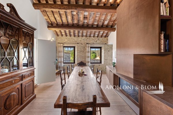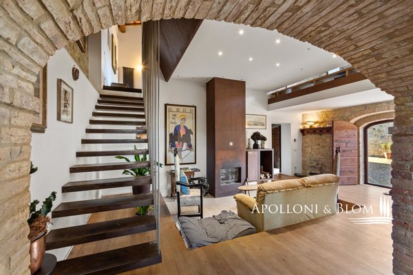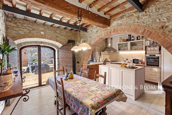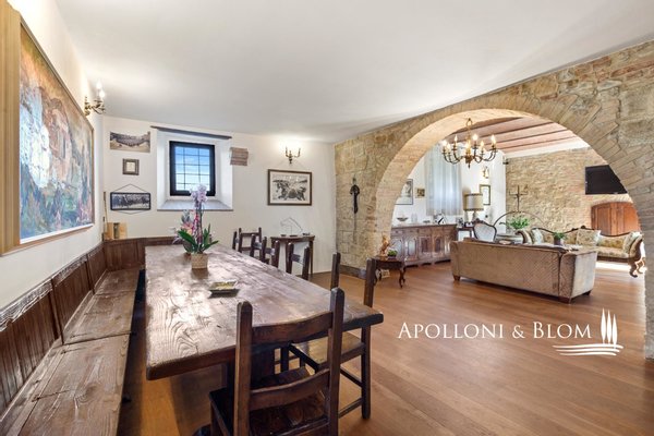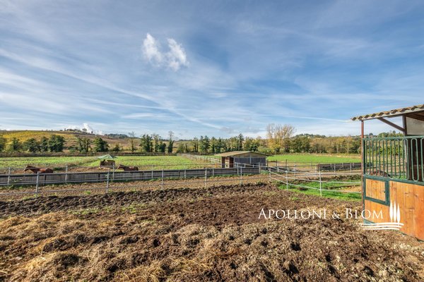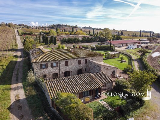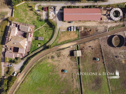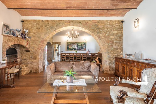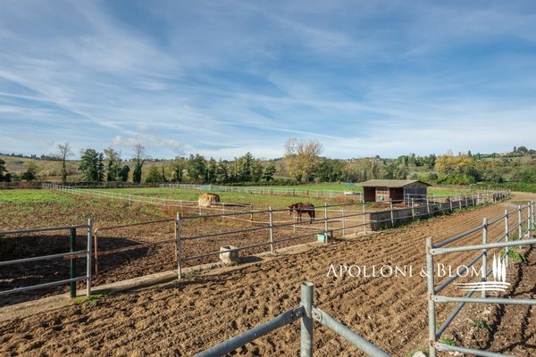 Typ: Typisch toskanisches Bauernhaus mittelalterlichen Ursprungs mit Steinfassaden und charakteristischem gepflasterten Innenhof, Gesamtfläche von 906 m², einschließlich Bauernhaus mit Hauptwohnsitz auf vier Etagen von 440 m² und 6 Wohnungen verschiedener Größe und Art, 2 Nebengebäude, umgeben von ca. 3 ha Land mit Gartenbereich, Ställen mit 16 Boxen und Koppeln mit Schuppen und Nebengebäuden