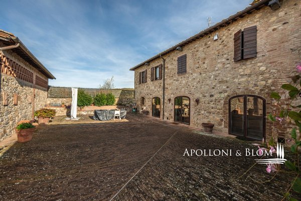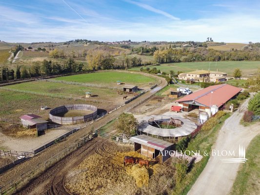 Mittelalterliches Bauernhaus mit Innenhof, Hallenbad und einem Pferdepark mit Ställen und Paddocks im Chianti Classico in der Nähe von Siena zu verkaufen. Mit Ursprüngen aus dem Jahr 1000, im Herzen des Chianti Classico Region, 15 Minuten von Siena, ein herrliches Landhaus mit 3 Hektar Land verbunden und ein Paradies für Pferdeliebhaber mit einem Reitzentrum mit neuen Paddocks ausgestattet, Ställe mit 18 Boxen und eine 7.800 qm Trainingsstrecke. Das Bauernhaus wurde 2012 renoviert, wobei die rauen Steinfassaden erhalten blieben, die einen typischen, mit Terrakotta gepflasterten Innenhof umgeben, von dem aus man Zugang zum Haupthaus und zu 8 Gästewohnungen hat. Jedes Zimmer ist ein hervorragendes Beispiel für die Wiederherstellung und Neugestaltung, bei der sich moderner Komfort mit den charakteristischen Elementen historischer toskanischer Bauernhäuser verbindet: große Backsteinbögen, Travertinböden, gewölbte Terrakotta-Decken und freiliegende Steinwände, Holzbalken, Gas- und Holzkamine und Klimaanlage in allen Zimmern. Das vierstöckige, 440 Quadratmeter große Haupthaus bietet im Erdgeschoss einen Wohnbereich mit zwei Lounges, eine Küche mit zentraler Insel und ein Spa mit beheiztem Innenpool und Fitnessraum. Im ersten Stock gibt es ein Wohnzimmer, ein Arbeitszimmer und drei Schlafzimmer, das Hauptschlafzimmer mit Garderobe und eigenem Bad. Eine der Gästewohnungen wurde aus einer ehemaligen Kapelle mit einem originalen Holzdachstuhl wiederhergestellt, ein charmanter offener Dachboden mit Schlafbereich. Alle Bäder sind modern ausgestattet und mit Travertinmarmor gefliest. Ein Gebäude mit Blick auf den Innenhof ist als Spielraum gedacht, kann aber in eine zusätzliche Gästewohnung umgewandelt werden. Ein Außenschwimmbecken kann hinzugefügt werden. Das Reitzentrum besteht aus einem Hauptstall mit 16 Boxen und Sattelzeug sowie Nebengebäuden und Vordächern mit zusätzlichen Boxen auf den Koppeln. Im Herzen der Toskana, südlich von Florenz, in der Nähe der wichtigsten Weingüter und Kellereien des Chianti Classico und nur wenige Minuten vom historischen Zentrum der Stadt des Palio mit seiner außergewöhnlichen gotischen Kathedrale aus dem 14. Jahrhundert und der Piazza del Campo mit dem Torre del Mangia entfernt.