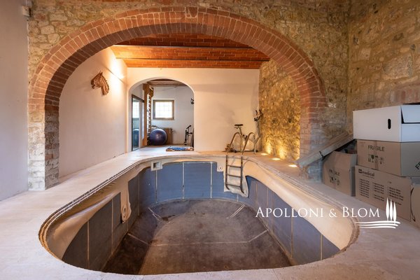 Mittelalterliches Bauernhaus mit Innenhof, Hallenbad und einem Pferdepark mit Ställen und Paddocks im Chianti Classico in der Nähe von Siena zu verkaufen. Mit Ursprüngen aus dem Jahr 1000, im Herzen des Chianti Classico Region, 15 Minuten von Siena,