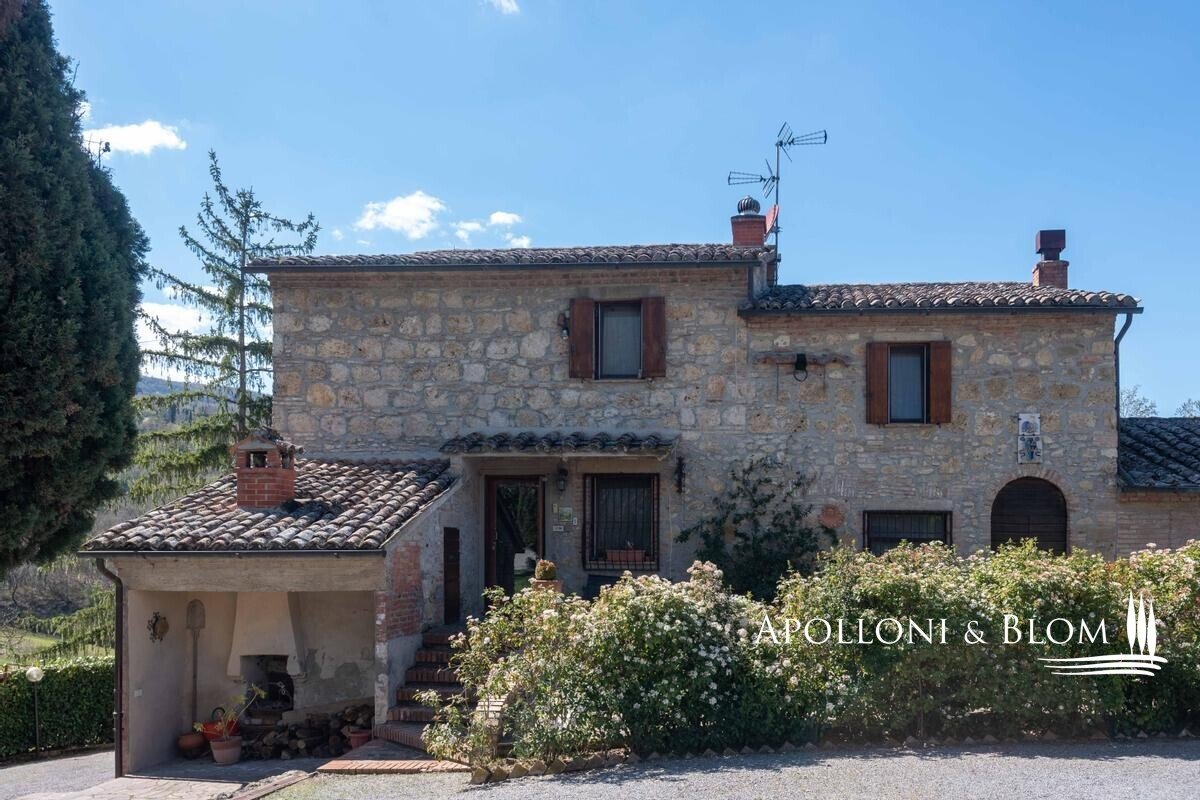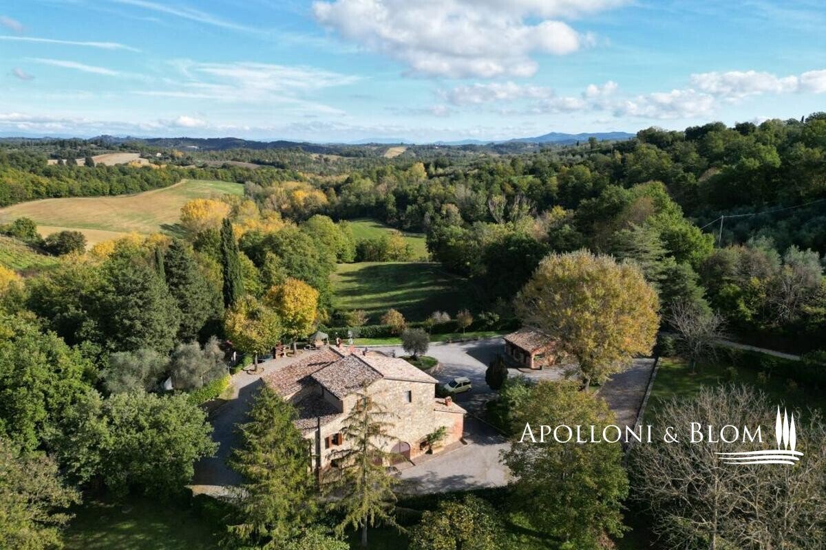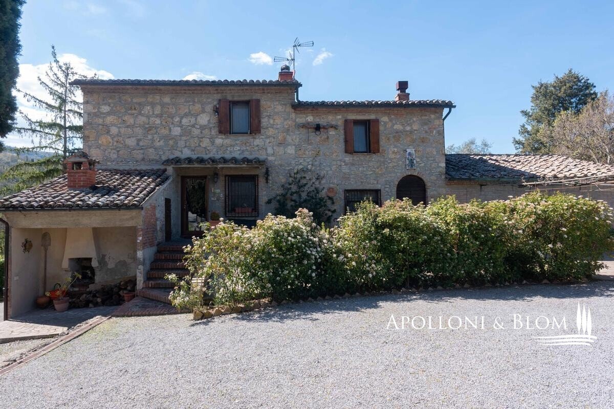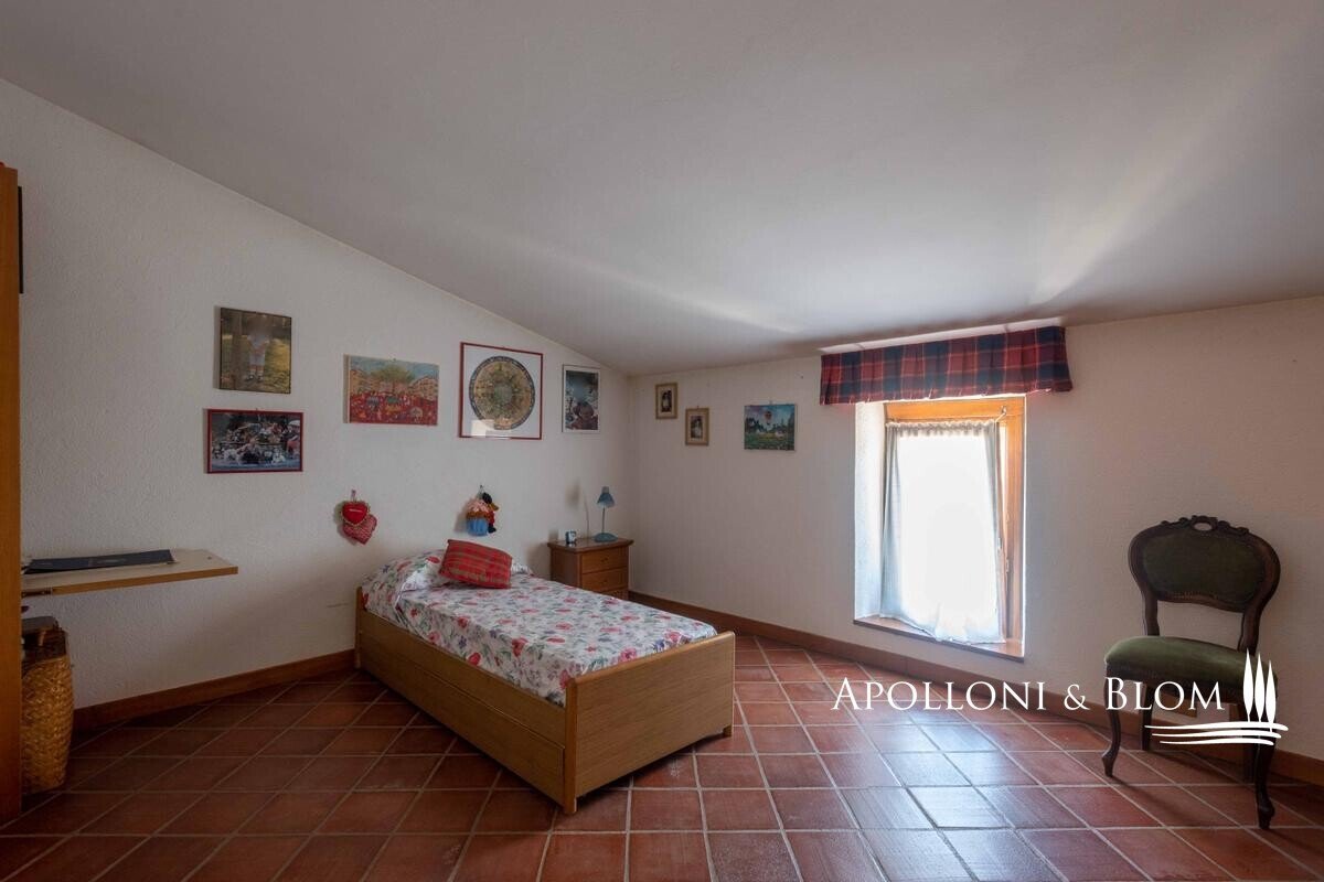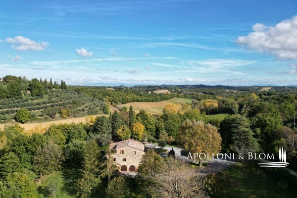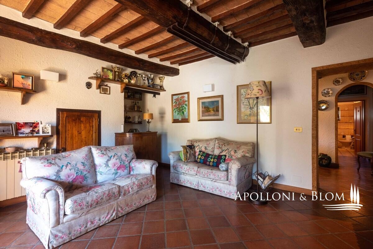 6,5 Hektar großes Anwesen mit altem Bauernhaus, Olivenhain und umzubauenden Nebengebäuden in Cetona zu verkaufen. Nur wenige Schritte vom historischen Zentrum von Cetona entfernt, in einer privilegierten Panoramalage mit freiem Blick auf die toskanische Landschaft, liegt dieses charmante Bauernhaus aus dem 19. Jahrhundert. Die Residenz, die sich durch ihre klassische Steinfassade und ihren zeitlosen rustikalen Charme auszeichnet, erstreckt sich über drei Ebenen mit einer Fläche von ca. 294 m². Im Erdgeschoss befinden sich die Wohnräume, während der Schlafbereich im ersten Stock ein Hauptschlafzimmer mit eigenem Bad, vier weitere Schlafzimmer und ein Familienbad umfasst. Terrakottaböden, Balkendecken, Holzfensterrahmen und Fensterläden bewahren die toskanische Authentizität. Ein mediterraner Garten mit Freiflächen lädt zum Entspannen und Essen ein und beherbergt drei Nebengebäude von 20 qm, 30 qm und 70 qm, die derzeit als Holzschuppen, Lager und Werkzeugschuppen genutzt werden und großes Potenzial für den Umbau in zusätzliche Wohn-, Arbeits- und Wellnessbereiche bieten. Um das Bauernhaus herum befinden sich ca. 6,5 Hektar Land, darunter ein Olivenhain mit 170 Bäumen, Wald und Ackerland sowie ein interessanter Weinberg von ca. 1 Hektar, der heute nicht bewirtschaftet wird, aber hervorragende Möglichkeiten für die Neubepflanzung mit Qualitätsreben bietet, die das Anwesen wieder an seine edle Weinbautradition heranführen könnten. Mitten in der Natur, aber in der Nähe des Dorfes und aller Dienstleistungen, ein prestigeträchtiger Wohnsitz, der die authentischste Essenz des toskanischen Lebens verkörpert.