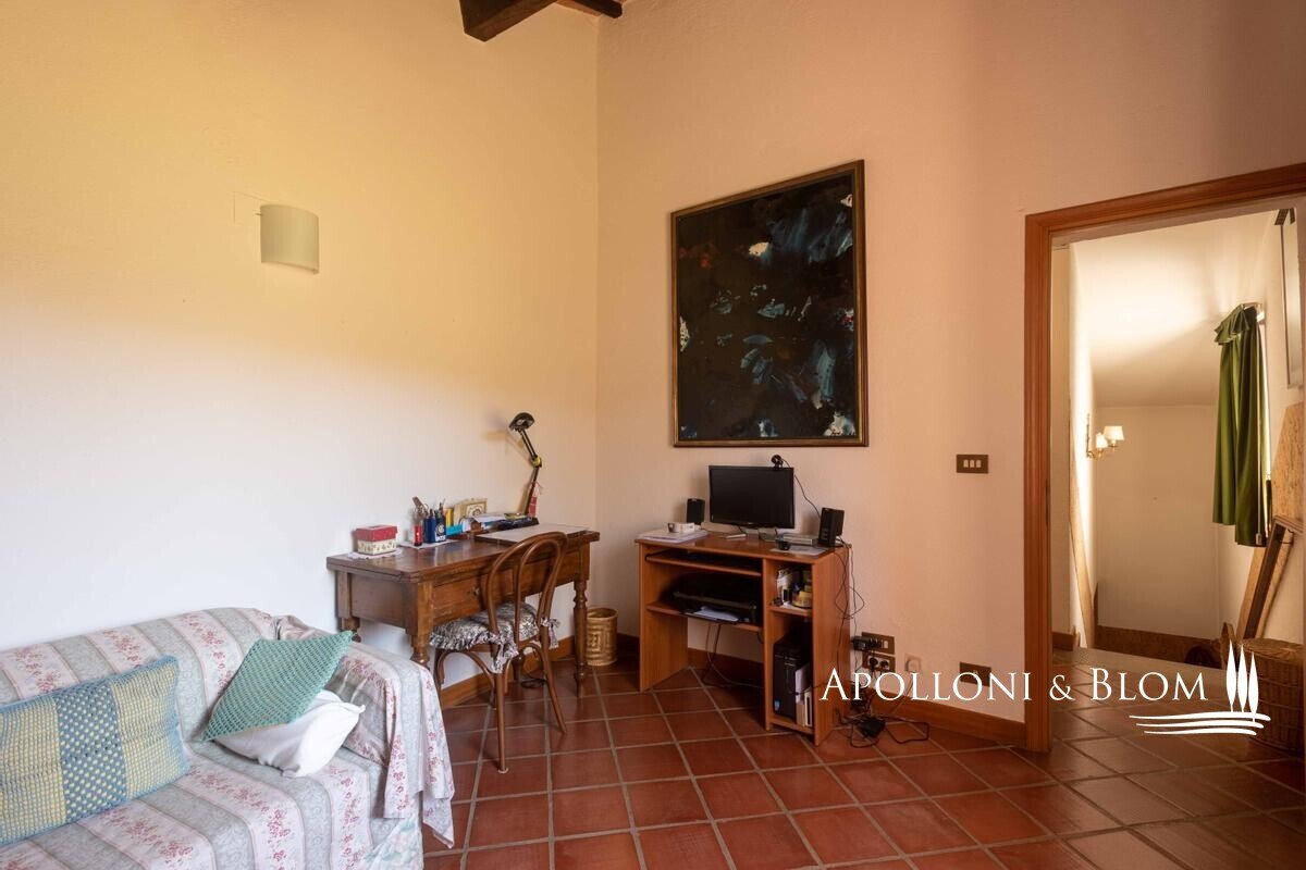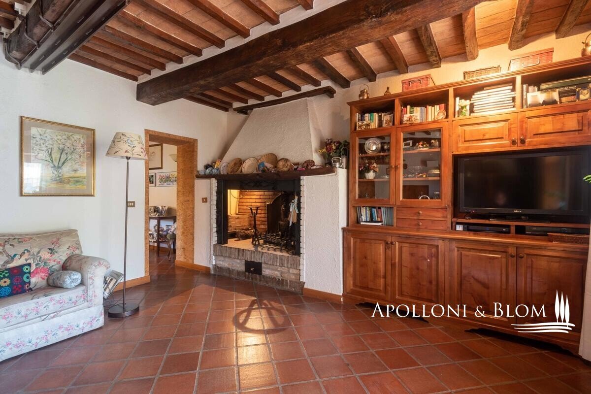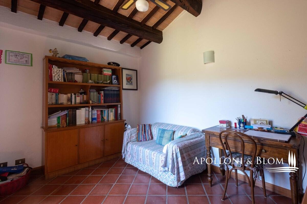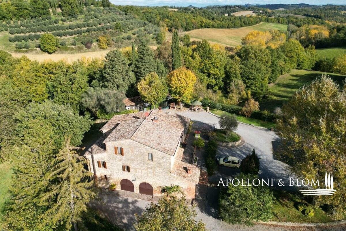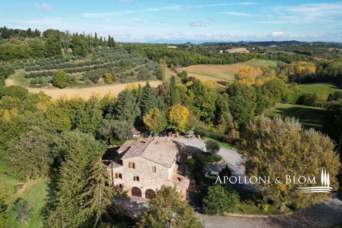 6,5 Hektar großes Anwesen mit altem Bauernhaus, Olivenhain und umzubauenden Nebengebäuden in Cetona zu verkaufen. Nur wenige Schritte vom historischen Zentrum von Cetona entfernt, in einer privilegierten Panoramalage mit freiem Blick auf die toskanische Landschaft, liegt dieses charmante Bauernhaus aus dem 19. Jahrhundert. Die Residenz, die sich durch ihre klassische Steinfassade und ihren zeitlosen rustikalen Charme auszeichnet, erstreckt sich über drei Ebenen mit einer Fläche von ca. 294 m². Im Erdgeschoss befinden sich die Wohnräume, während der Schlafbereich im ersten Stock ein Hauptschlafzimmer mit eigenem Bad, vier weitere Schlafzimmer und ein Familienbad umfasst. Terrakottaböden, Balkendecken, Holzfensterrahmen und Fensterläden bewahren die toskanische Authentizität. Ein mediterraner Garten mit Freiflächen lädt zum Entspannen und Essen ein und beherbergt drei Nebengebäude von 20 qm, 30 qm und 70 qm, die derzeit als Holzschuppen, Lager und Werkzeugschuppen genutzt werden und großes Potenzial für den Umbau in zusätzliche Wohn-, Arbeits- und Wellnessbereiche bieten. Um das Bauernhaus herum befinden sich ca. 6,5 Hektar Land, darunter ein Olivenhain mit 170 Bäumen, Wald und Ackerland sowie ein interessanter Weinberg von ca. 1 Hektar, der heute nicht bewirtschaftet wird, aber hervorragende Möglichkeiten für die Neubepflanzung mit Qualitätsreben bietet, die das Anwesen wieder an seine edle Weinbautradition heranführen könnten. Mitten in der Natur, aber in der Nähe des Dorfes und aller Dienstleistungen, ein prestigeträchtiger Wohnsitz, der die authentischste Essenz des toskanischen Lebens verkörpert.