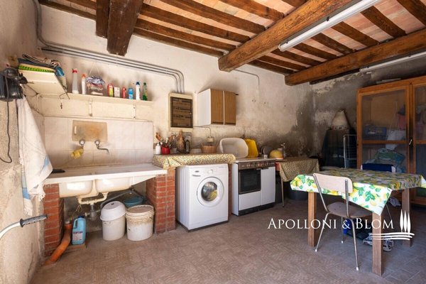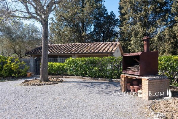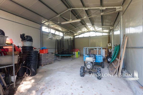 Land: ca. 6,5 Hektar, davon ca. 1 Hektar nicht mehr genutzter Weinberg, ca. 1 Hektar Olivenhain mit 170 Bäumen, Wald und Ackerland