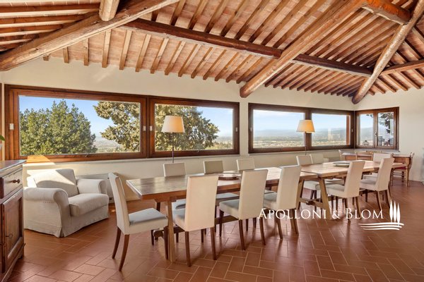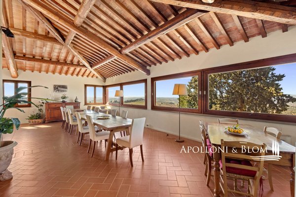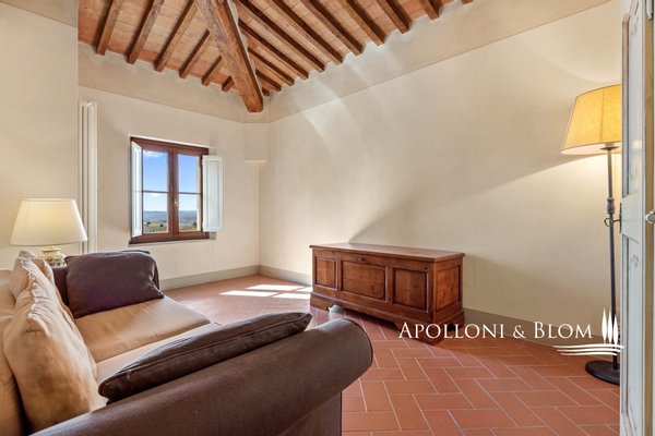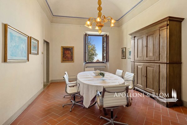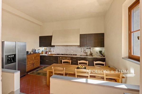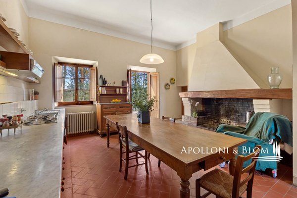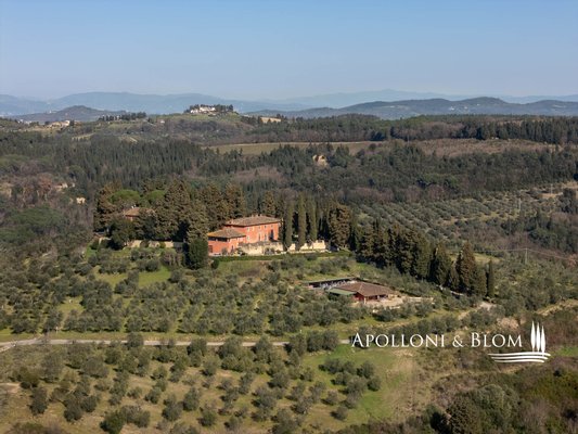 In einer bezaubernden Umgebung gelegen, mit Herrenhaus, Bauernhäusern, Nebengebäuden, Weingut, Chianti DOCG Weinbergen und Olivenhainen, zu verkaufen in Florenz. Im Herzen der Toskana, eingebettet in die malerischen Hügel des Chianti, nicht weit von Florenz entfernt, erstreckt sich das Anwesen über 124 Hektar und kann auf eine jahrhundertealte landwirtschaftliche Tradition zurückblicken, die auf dem zertifizierten biologischen Anbau wertvoller Traubensorten und Oliven beruht. Der Hauptwohnsitz ist eine 500 Quadratmeter große Villa aus dem 14. Jahrhundert, die die Eleganz des toskanischen Klassizismus verkörpert, mit raffinierten und geräumigen Salons und fünf Schlafzimmern. Die Anlage wird durch zwei kürzlich renovierte Bauernhäuser und eine Scheune bereichert, in denen acht Wohnungen unterschiedlicher Art für die Unterbringung von Gästen untergebracht sind, insgesamt zwanzig Zimmer. Jeder Raum ist eine Hommage an die rustikale toskanische Tradition, mit Holzbalkendecken und Terrakottaböden, die eine warme und authentische Atmosphäre schaffen. Ein drittes Bauernhaus mit einer Fläche von 780 Quadratmetern, das etwa 700 Meter von der Villa entfernt liegt, wird derzeit restauriert und bietet weitere Entwicklungsmöglichkeiten, ideal für eine exklusive Privatvilla oder für die Schaffung von Wohnungen für den Agrotourismus und für Ferienhäuser, wodurch die Unterbringungskapazität des Anwesens weiter erhöht wird. Der Weinberg, der sich über 28 Hektar erstreckt, wird mit einheimischen Rebsorten wie Sangiovese, Canaiolo, Ciliegiolo, Colorino und Trebbiano sowie internationalen Rebsorten wie Cabernet und Merlot bepflanzt. Daraus entstehen Weine von außergewöhnlicher Qualität wie Chianti Colli Fiorentini DOCG, IGT Toscana SuperTuscans und Vinsanto DOC. Neben der Weinproduktion vervollständigen 26 Hektar Olivenhaine das Bild eines ausgezeichneten Betriebs. Der Weinkeller mit einer beeindruckenden Fläche von 1400 Quadratmetern ist für die Weinherstellung ausgestattet und festigt den Wert dieses Anwesens als eines der renommiertesten der Region. Eine einmalige Gelegenheit für diejenigen, die ein Stück toskanisches Paradies besitzen möchten, das reich an Geschichte und Tradition ist, aber auch ein großes Potenzial für zukünftige Entwicklungen bietet.