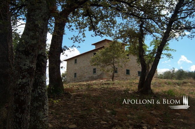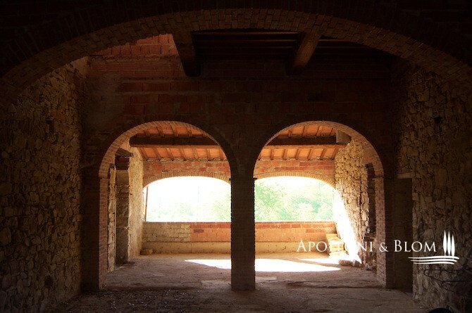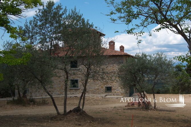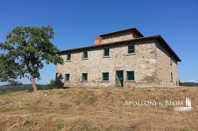 Unfertiges, zu renovierendes Bauernhaus aus Stein mit Grundstück in der Nähe von Arezzo, Toskana, zu verkaufen. Das Anwesen befindet sich im Herzen der Toskana, zwischen Florenz, Siena und Arezzo, umgeben von Olivenhainen und Eichenwäldern. Das
