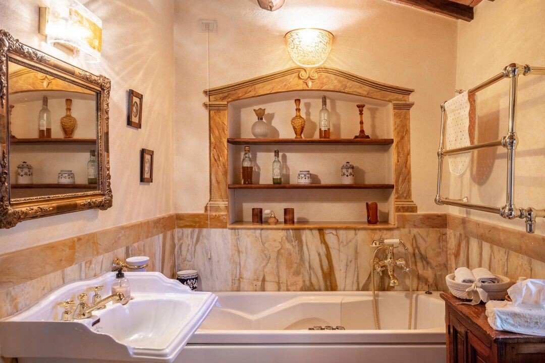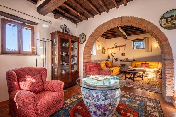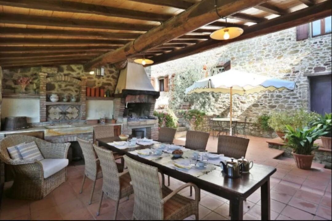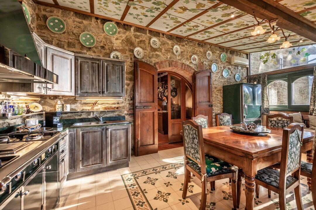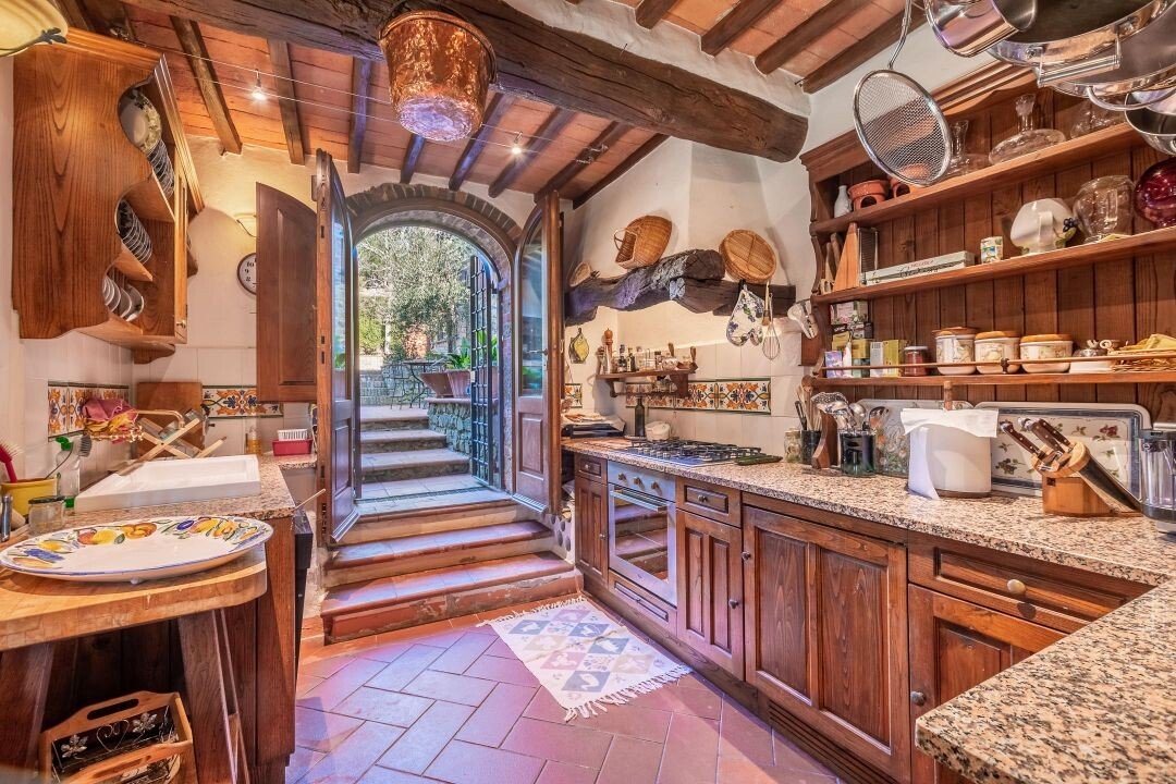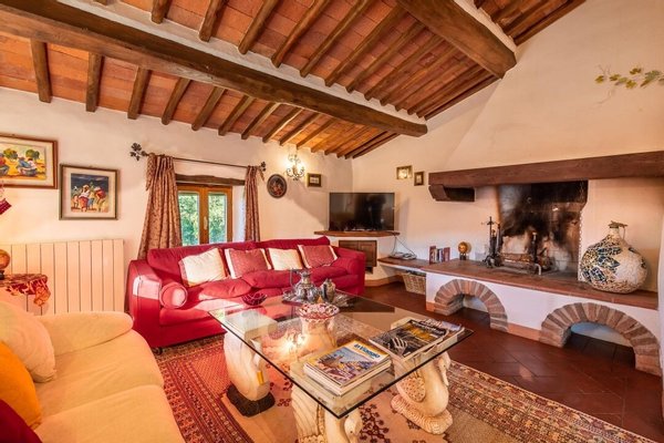 Bezaubernde Landvilla aus dem 15. Jahrhundert mit Pool, Olivenhain und Weinberg zu verkaufen, nur 5 km von Gaiole in Chianti, Siena entfernt. Im Herzen des Chianti Classico, umgeben von jahrhundertealten Wäldern und Reihen von Weinstöcken, in der Nähe von prestigeträchtigen Ländereien mit Schlössern und mittelalterlichen Dörfern, führt ein weißer Kiesweg zu einer mit Steinen und Zypressen geschmückten Auffahrt, die zu einer wunderschönen Umgebung mit zentraler Villa führt, umgeben von Garten, Olivenhain, Weinberg und Wald mit spektakulärem Blick auf die Landschaft. Die Villa ist das Ergebnis der geschickten Restaurierung eines traditionellen Chianti-Bauernhauses aus dem Jahr 1400 mit freiliegenden Steinfassaden und -wänden, Fenstern mit Holzläden und Giebeldächern, die mit traditionellen toskanischen Ziegeln gedeckt sind. Die Innenräume bieten immer noch die rustikale, geschichtsträchtige Atmosphäre mit Terrakottabögen und Holzdecken, die mit Marmorbädern mit Whirlpool, Kaminen, Majolikafliesen und Wandgemälden verbunden sind und dem ganzen Haus eine elegante und raffinierte Atmosphäre verleihen. Der Außenbereich der Villa besteht aus Terrassen mit Pavillons und Wohnbereichen im Freien sowie einem Pool mit Jacuzzi. In den Innenräumen befinden sich Wohnzimmer mit Kaminen, ein Klavier, ein Esszimmer im Wintergarten, eine Küche und ein Zugang zur Außenküche mit Ofen und Grill. Das Hauptschlafzimmer im Erdgeschoss hat einen eigenen Eingang und verfügt über ein Himmelbett, ein Badezimmer mit Dusche und Jacuzzi. Im zweiten Stock, der sowohl über eine Innen- als auch eine Außentreppe erreichbar ist, befinden sich ein Wohnzimmer mit Kamin, vier Schlafzimmer mit eigenem Bad, zwei davon mit Whirlpool. Alle Räume werden durch eine Klimaanlage gekühlt. Die Solaranlage sorgt im Sommer für Warmwasser und im Winter für eine Teilheizung. Eine Alarmanlage und ein eingezäunter Garten mit automatischem Tor sorgen für Privatsphäre und Sicherheit. Zu den über 6 Hektar Privatgrund gehören ein kleiner Weinberg mit der Produktion von Chianti Classico Wein, ein Olivenhain mit 100 Bäumen, Wald und Ackerland. Perfekt als Ferienvilla, bereit zu leben, für den privaten Gebrauch oder Einkommen Eigentum Hosting Reisende für ihre Ferien in Chianti.