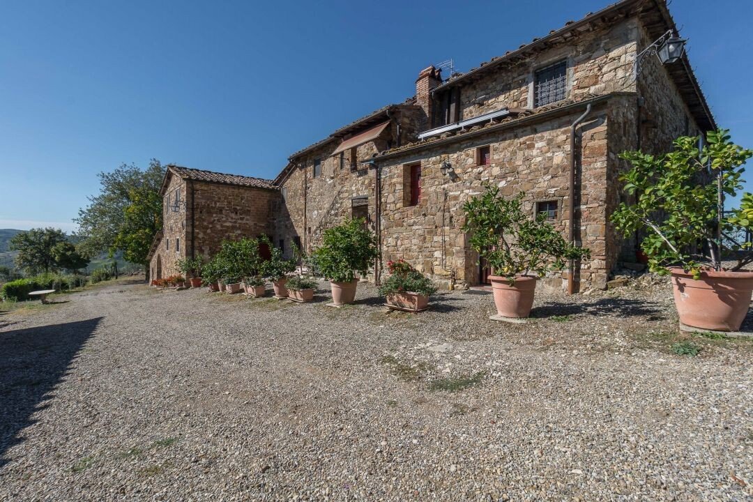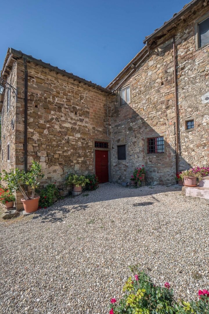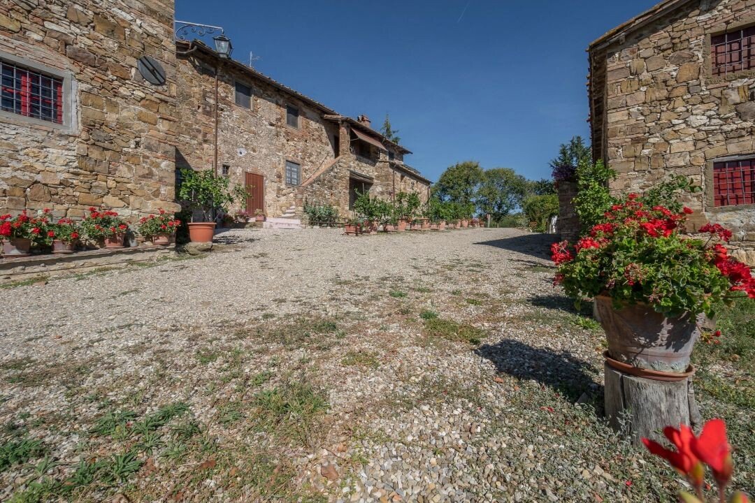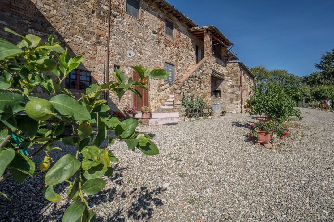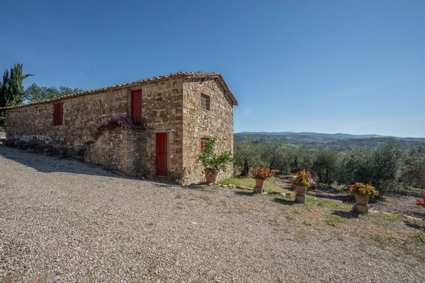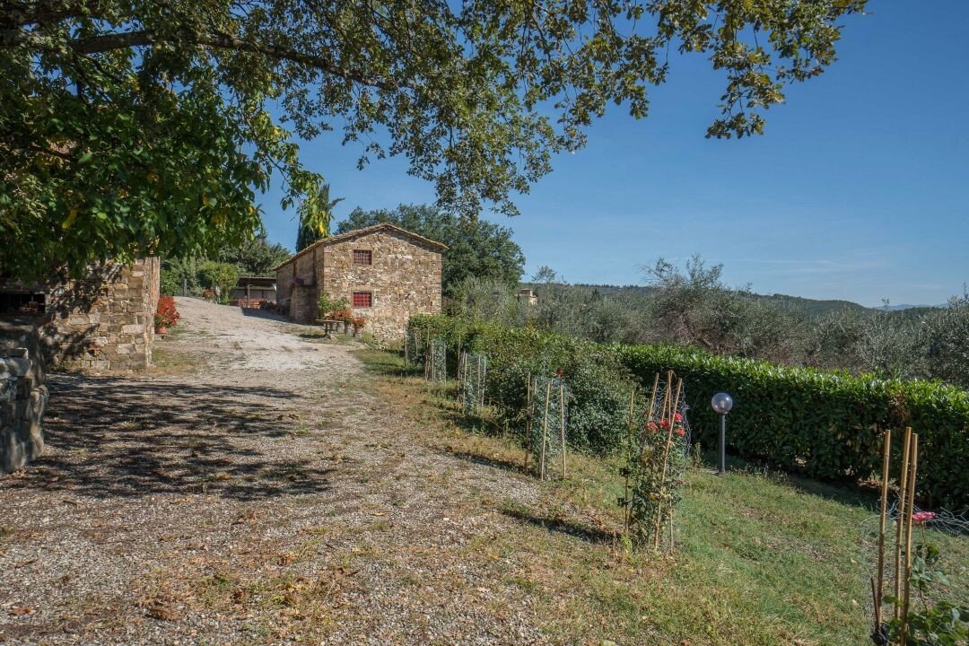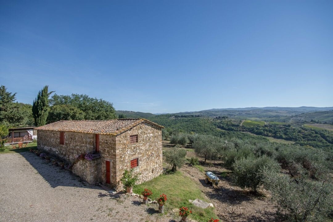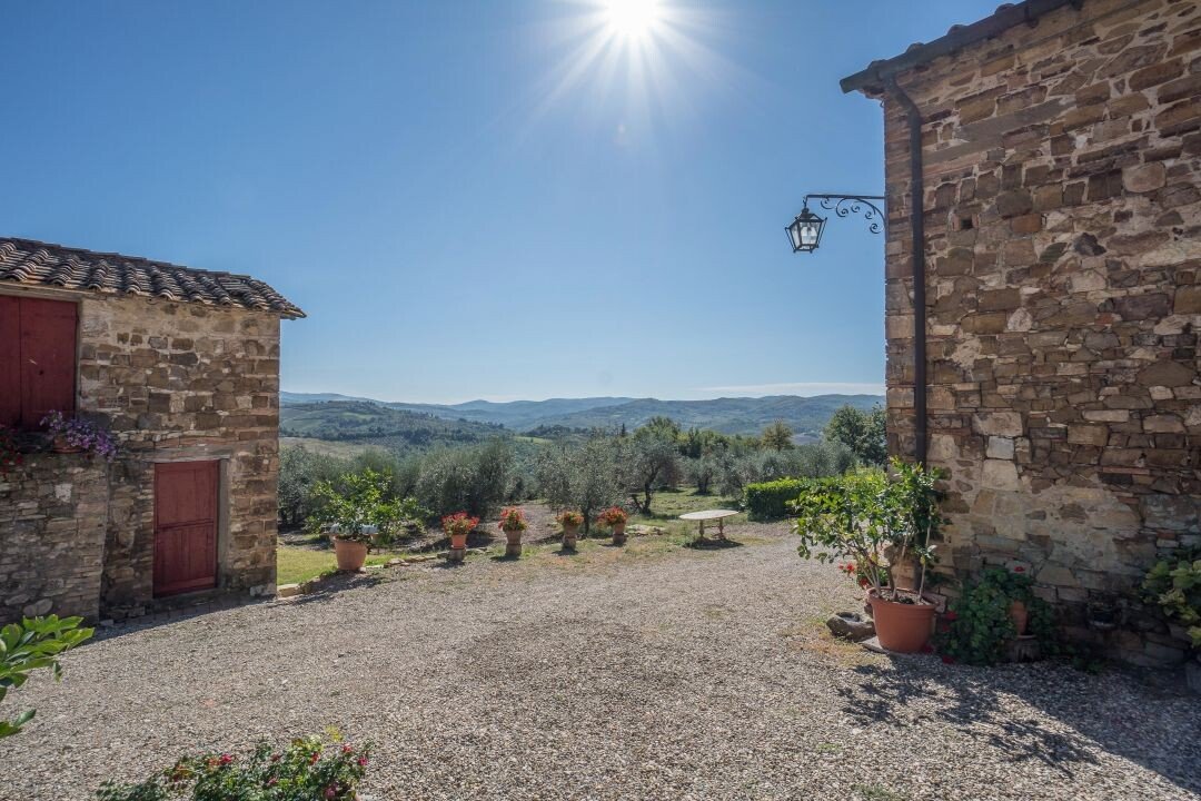 Bauernhaus aus Stein mit Nebengebäude, Sonnenkollektoren, Garten, Olivenhain und Land, zu verkaufen in Tavernelle Val di Pesa, Florenz. Im Herzen der Toskana, in erhöhter Lage an der Grenze zum Chianti Classico-Gebiet, auf halbem Weg zwischen Florenz, Siena und San Gimignano, charakteristisches Bauernhaus aus Stein aus der Zeit vor dem Jahr 1000 mit perfekt gepflegter Zufahrtsstraße. Dieser traditionelle Landsitz besteht aus einem freistehenden, dreiseitigen Teil eines charakteristischen Bauernhauses auf zwei Ebenen, das in verschiedenen Phasen renoviert wurde und jetzt perfekt erhalten ist mit Terrakottaböden und Decken mit freiliegenden Holzbalken und Sonnenkollektoren. Der Hauptwohnsitz im ersten Stock, mit Außentreppe und Loggia, umfasst ein Wohnzimmer mit Kamin, ein Esszimmer, eine Küche, fünf Schlafzimmer und zwei Badezimmer. Im Erdgeschoss befindet sich ein geräumiger und charakteristischer Wohnbereich mit Küche und Essbereich, ein Arbeitszimmer, ein Schlafzimmer und ein Badezimmer. Der alte gemauerte Holzofen, ein Keller und Lagerräume vervollständigen das Erdgeschoss. Vor dem Haus befindet sich eine charakteristische Steinscheune auf zwei Ebenen, die in Wohnraum umgewandelt werden kann. Ein Olivenhain mit etwa 750 Bäumen produziert ein ausgezeichnetes Olivenöl. Casa La Pace eignet sich sowohl als privater Wohnsitz, der sofort bewohnt werden kann, als auch als touristischer Wohnsitz mit landwirtschaftlicher Tätigkeit. Die Gegend und der atemberaubende Panoramablick machen das Anwesen einzigartig und es genießt eine ausgezeichnete Privatsphäre.
