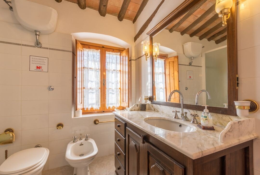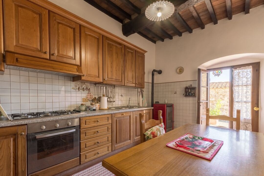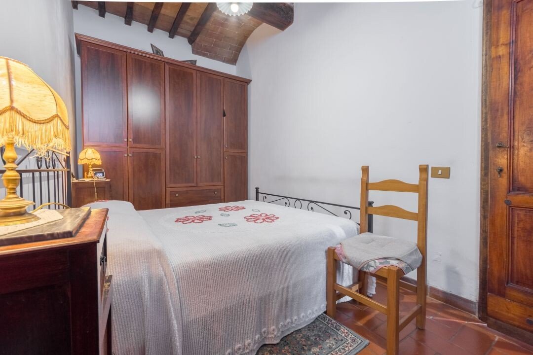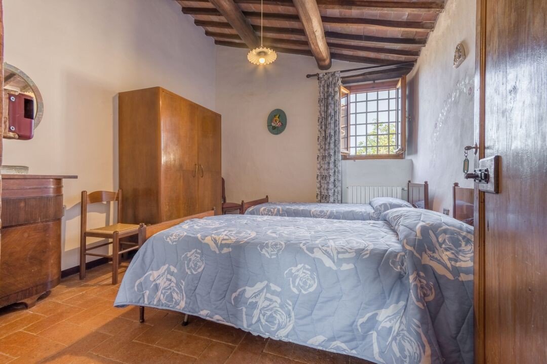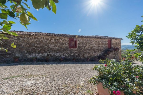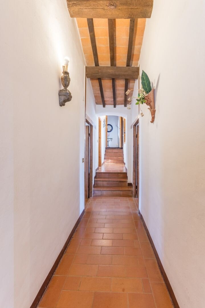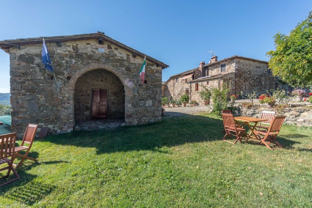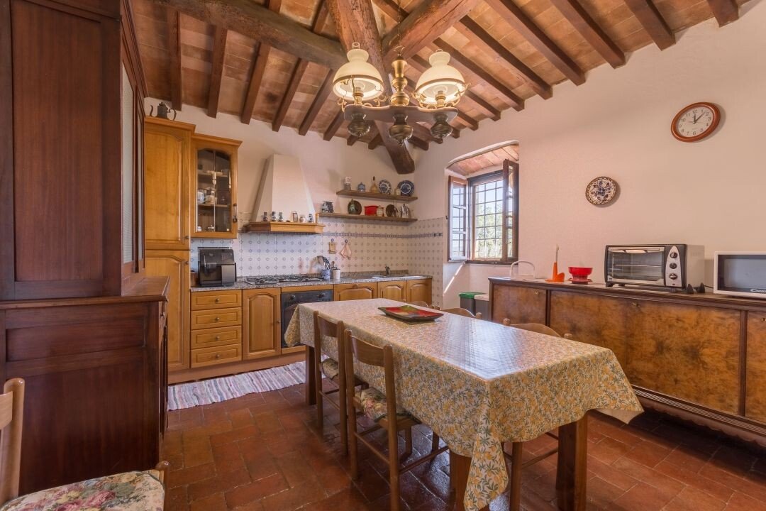 Bauernhaus aus Stein mit Nebengebäude, Sonnenkollektoren, Garten, Olivenhain und Land, zu verkaufen in Tavernelle Val di Pesa, Florenz. Im Herzen der Toskana, in erhöhter Lage an der Grenze zum Chianti Classico-Gebiet, auf halbem Weg zwischen Florenz, Siena und San Gimignano, charakteristisches Bauernhaus aus Stein aus der Zeit vor dem Jahr 1000 mit perfekt gepflegter Zufahrtsstraße. Dieser traditionelle Landsitz besteht aus einem freistehenden, dreiseitigen Teil eines charakteristischen Bauernhauses auf zwei Ebenen, das in verschiedenen Phasen renoviert wurde und jetzt perfekt erhalten ist mit Terrakottaböden und Decken mit freiliegenden Holzbalken und Sonnenkollektoren. Der Hauptwohnsitz im ersten Stock, mit Außentreppe und Loggia, umfasst ein Wohnzimmer mit Kamin, ein Esszimmer, eine Küche, fünf Schlafzimmer und zwei Badezimmer. Im Erdgeschoss befindet sich ein geräumiger und charakteristischer Wohnbereich mit Küche und Essbereich, ein Arbeitszimmer, ein Schlafzimmer und ein Badezimmer. Der alte gemauerte Holzofen, ein Keller und Lagerräume vervollständigen das Erdgeschoss. Vor dem Haus befindet sich eine charakteristische Steinscheune auf zwei Ebenen, die in Wohnraum umgewandelt werden kann. Ein Olivenhain mit etwa 750 Bäumen produziert ein ausgezeichnetes Olivenöl. Casa La Pace eignet sich sowohl als privater Wohnsitz, der sofort bewohnt werden kann, als auch als touristischer Wohnsitz mit landwirtschaftlicher Tätigkeit. Die Gegend und der atemberaubende Panoramablick machen das Anwesen einzigartig und es genießt eine ausgezeichnete Privatsphäre.