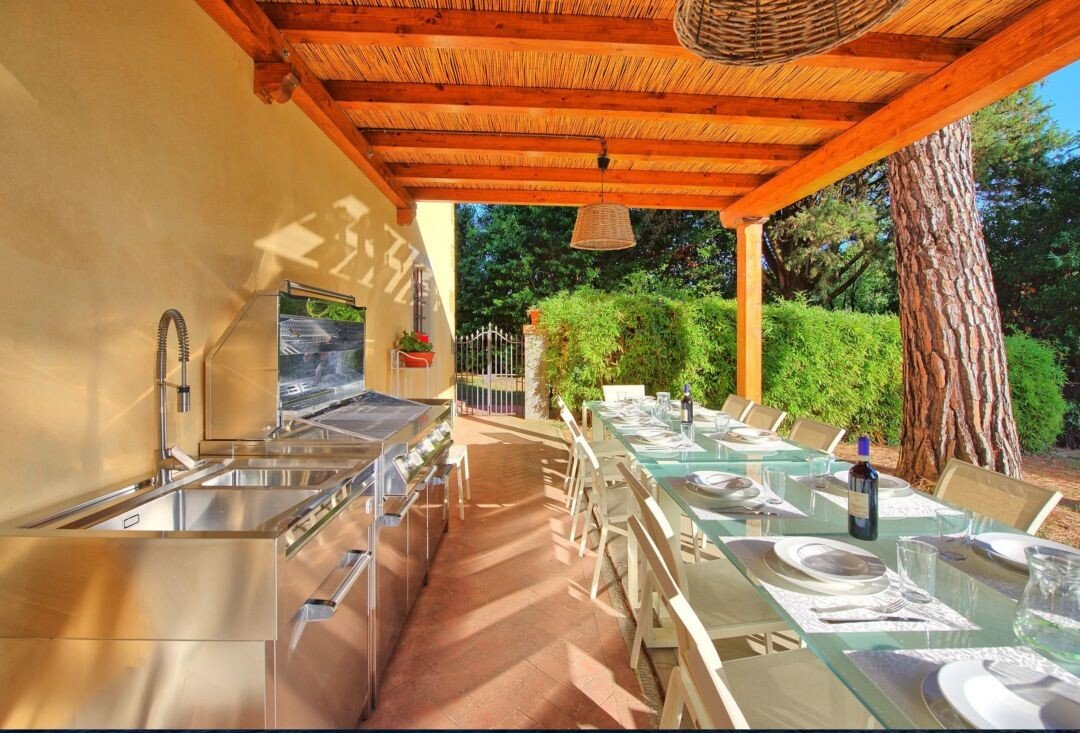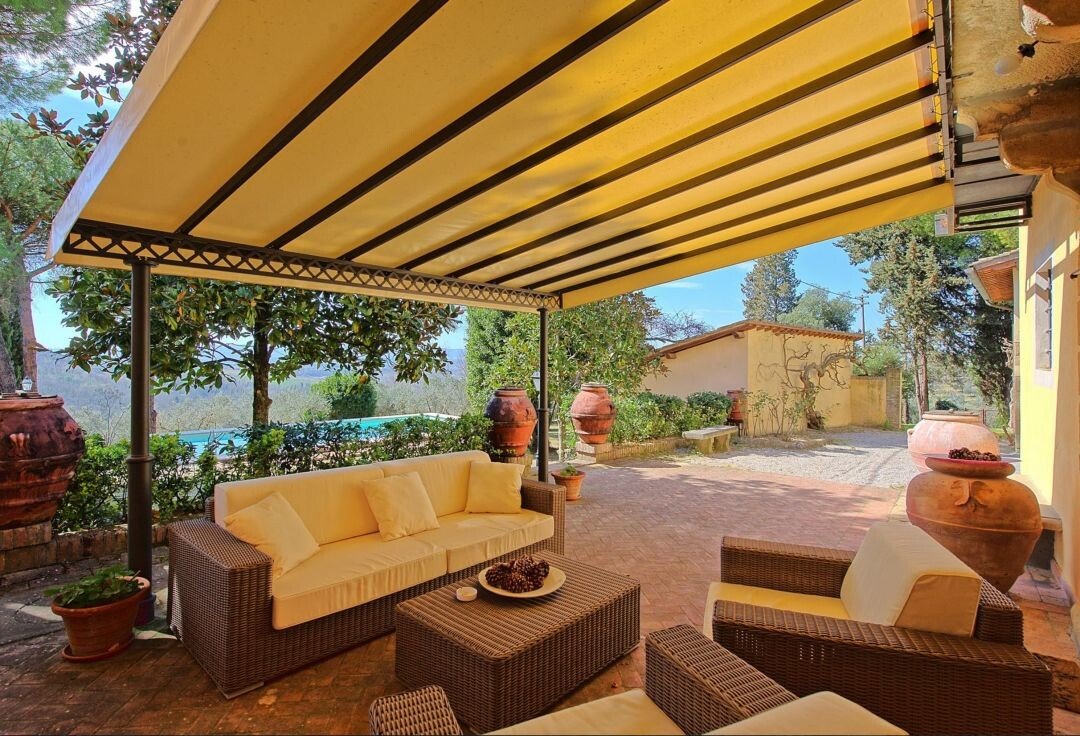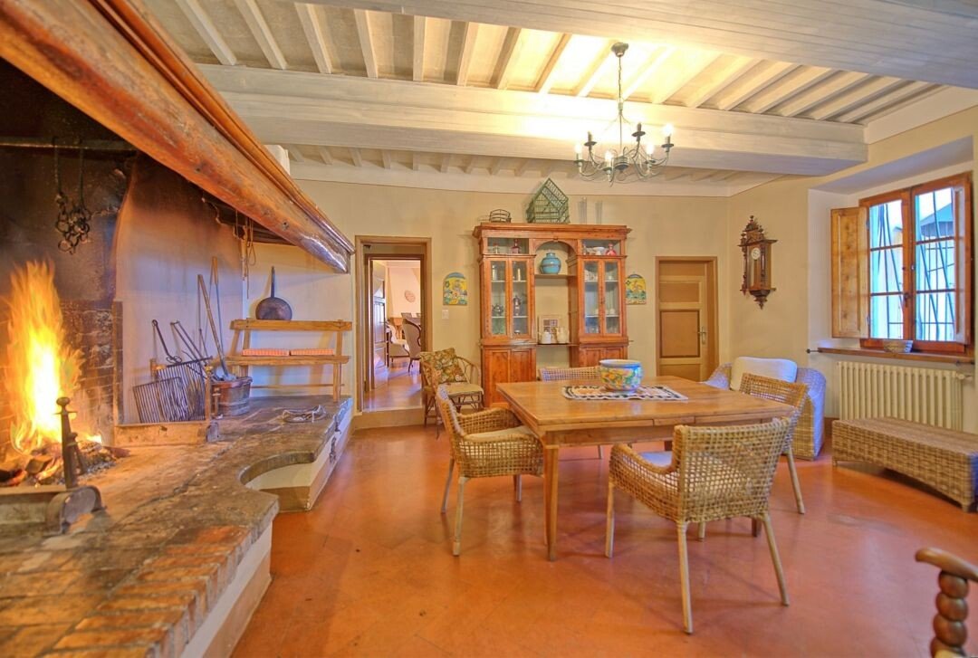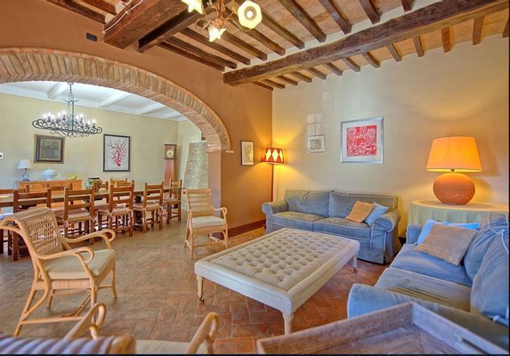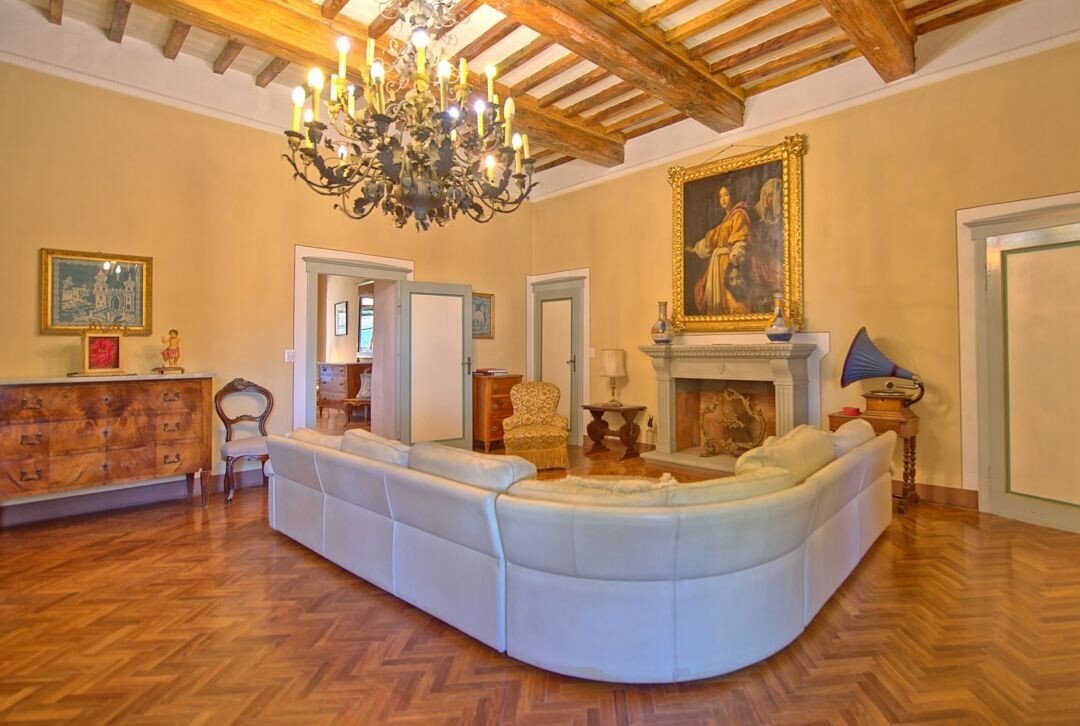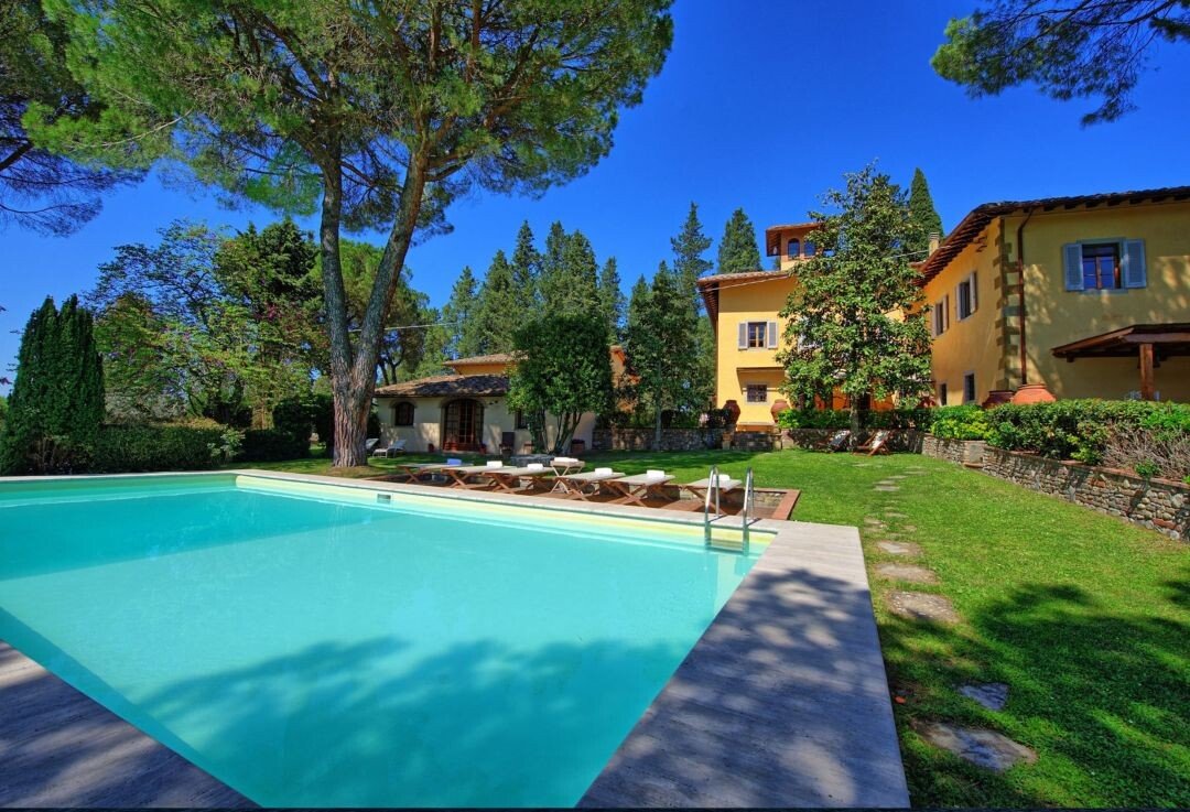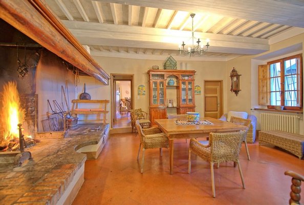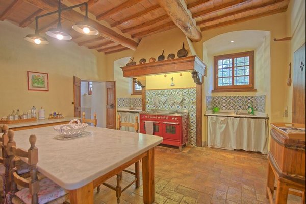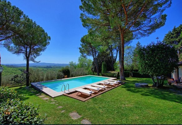 Luxus-Villa mit Pool und Land zu verkaufen in Chianti. Das Anwesen befindet sich nur wenige Kilometer von Barberino Val d'Elsa entfernt und ist eingebettet in die wunderschöne Landschaft mit Weinbergen und Olivenhainen und bietet einen atemberaubenden Blick. Das luxuriöse Anwesen stammt aus dem 17. Jahrhundert und wurde mit viel Geschick und Liebe zum Detail restauriert. Die Kombination aus originalen, charakteristischen Elementen (Terrakottaböden, Backsteinbögen und freiliegende Holzbalken) und modernem Komfort machen das Anwesen einzigartig. Die Hauptvilla mit einer Fläche von ca. 400 m² (plus 150 m² Dachboden, der zu weiteren Unterkünften ausgebaut werden könnte) erstreckt sich über zwei Ebenen und verfügt über 7 Schlafzimmer, 6 Bäder und große, helle Räume mit schönen Kaminen. Im 150 qm großen Anbau befindet sich eine weitere Suite mit einem Schlafzimmer und einem Bad. Zum Anwesen gehören auch ein Weinkeller von ca. 300 qm und ein weiteres Nebengebäude von 50 qm, in dem eine Hausmeisterwohnung untergebracht ist. Das Anwesen ist umgeben von etwa einem Hektar Land mit Wald und einem kleinen Olivenhain und einem wunderschönen 5.500 qm großen Garten mit einem schönen Swimmingpool und einer Terrasse mit Außenküche und Grillplatz. Das Anwesen genießt große Ruhe und Privatsphäre, und ist in der Nähe der wichtigsten Dienstleistungen. Florenz, Siena, San Gimignano und Volterra sind leicht zu erreichen. Die Villa eignet sich perfekt, um in den luxuriösen Touristenkreisen vorgestellt zu werden und als Ort für Hochzeiten und private Veranstaltungen.