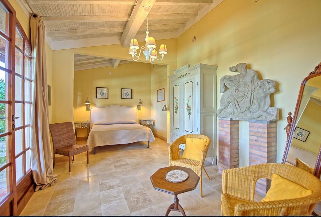 Nebengebäude: private Kapelle, Weinkeller von ca. 300 qm, Nebengebäude mit Wohnung von ca. 50 qm Erdgeschoss: Suite mit Schlafzimmer (Klimaanlage) und eigenem Bad mit Dusche, plus Nebengebäude von ca. 150 qm