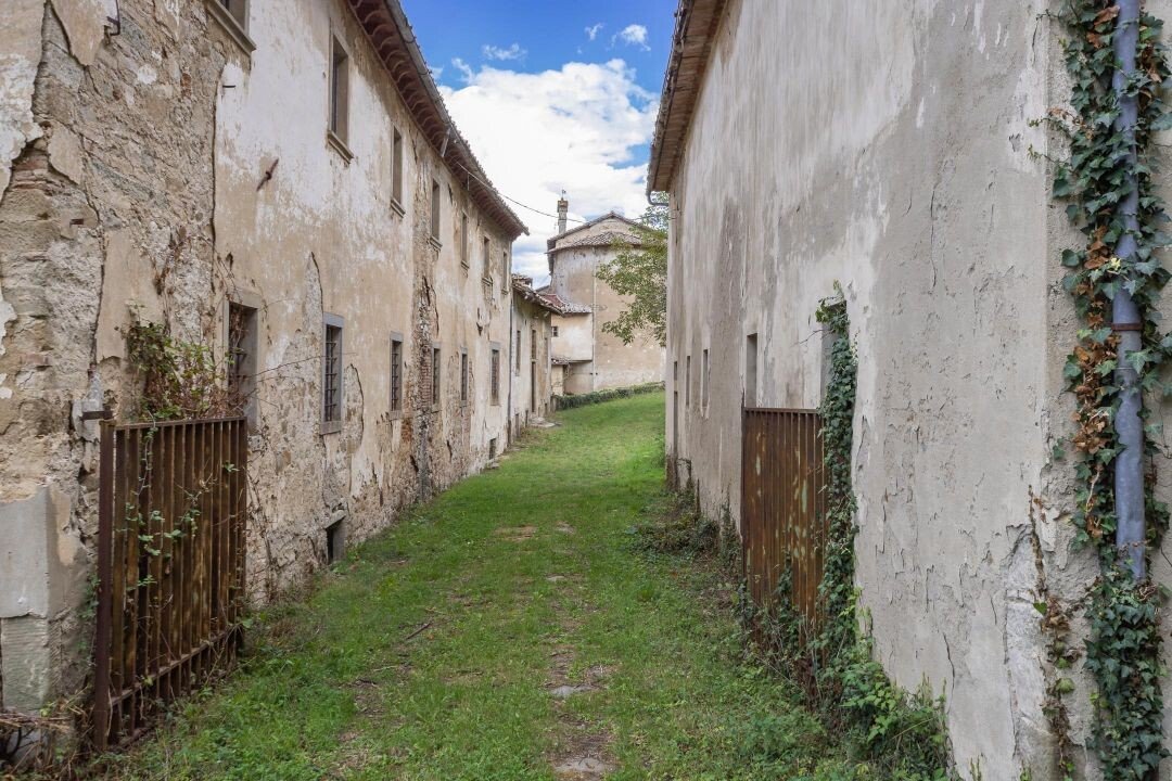 Borgo mit antiker Abtei zu verkaufen in Florenz, Toskana. Prächtiger und antiker Komplex, reich an Geschichte und Charme, eingebettet in den Hügeln mit Blick auf das gesamte Mugello-Tal, entlang der Via degli Dei, einer berühmten Straße, die Bologna