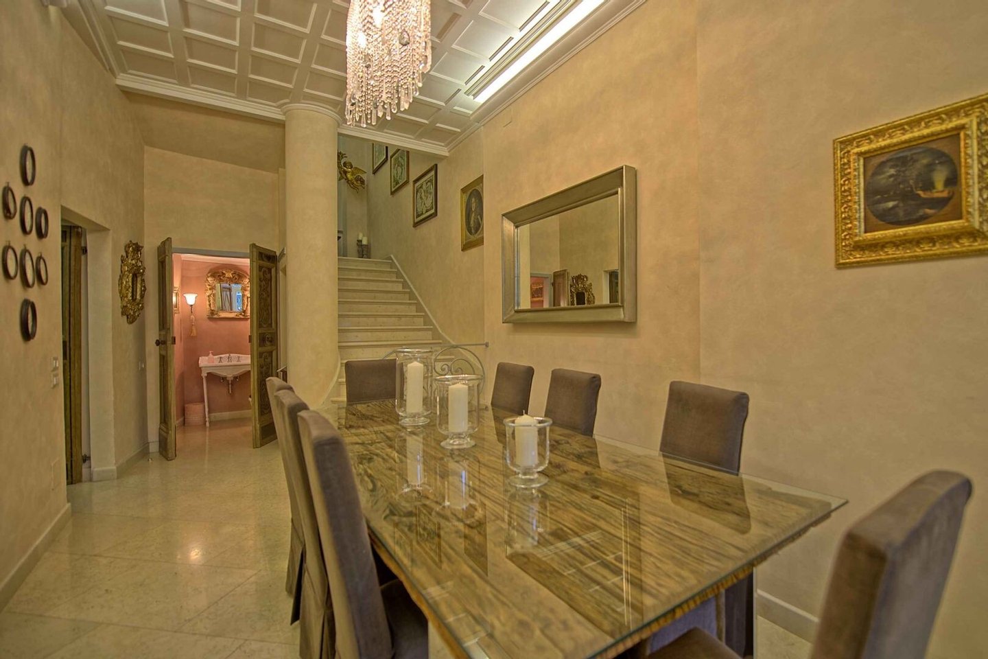 Prächtige Herrenhausvilla mit Swimmingpool und Garten im Zentrum von Florenz zu verkaufen. Nur wenige Schritte vom Zentrum entfernt, das man auch zu Fuß in etwas mehr als 15 Minuten erreichen kann, in einer der prestigeträchtigsten und panoramischen Hanglagen, elegante Doppelhaushälfte mit Garten und Panoramaschwimmbad. Die Villa, voller Charme und Reiz im edlen Stil des 19. Jahrhunderts mit einer schönen Loggia mit Kolonnaden und Bögen und einem Innenhof, ist sicherlich ein einzigartiges Objekt und gibt Emotionen auf Schritt und Tritt. Die geräumigen und malerischen Zimmer sind bereits möbliert und bereit zum Wohnen. Die Kassetten- und Gewölbedecken im Erdgeschoss verschönern die großen Empfangsräume zusammen mit den antiken Kaminen und den prächtigen Glasfenstern, die jeden Raum wunderbar beleuchten. Die Familie des Eigentümers hat die Villa vor kurzem in zwei große, unabhängige Häuser aufgeteilt, die aber leicht wieder zusammengeführt werden können. Die Villa erstreckt sich über mehrere Ebenen mit einem Untergeschoss und drei Obergeschossen. Eine der Küchen blickt auf den Innenhof der Villa und ist wunderschön mit einer Kassettendecke, einer zentralen Insel und großen Oberschränken ausgestattet. Neben der 23 Quadratmeter großen Loggia im Erdgeschoss und einer 44 Quadratmeter großen Veranda im ersten Stock mit wunderschönem Ausblick hat man im Obergeschoss Zugang zu einer großen 52 Quadratmeter großen Terrasse mit einem einzigartigen 360°-Panorama. Die Suiten in den oberen Stockwerken bieten Komfort, Luxus und Charme dank der prächtigen Ausstattung mit Holzvertäfelungen, Spiegeln, Schränken und Badezimmern mit elegantem Marmor, kostbaren Doppelwaschbecken, einem Whirlpool und Parkettböden. Der Garten mit großen Pinien und Zypressen und typisch mediterranen Pflanzen beherbergt einen großen Swimmingpool mit Sonnenterrasse und Pavillon, von dem aus man einen bezaubernden Blick auf die grünen Hügel rund um Florenz genießen kann, auf denen sich die florentinischen Medici-Villen in perfekter Harmonie mit einer sehr malerischen Landschaft erheben. Ein Anwesen im Zentrum von Florenz mit fußläufigem Zugang zu Kunstdenkmälern, Ausstellungen und den Straßen der italienischen Haute Couture sowie zu außergewöhnlichen Orten, die der Kunst der toskanischen Küche und des Weins gewidmet sind.