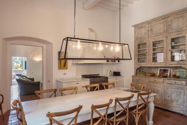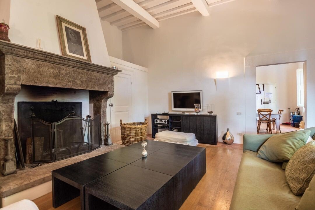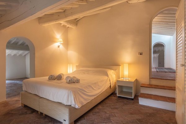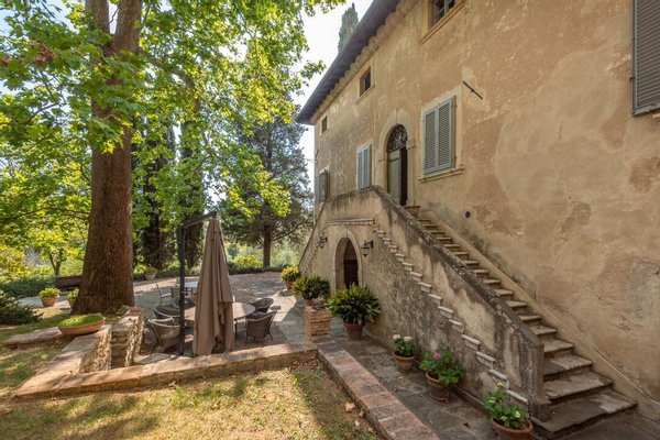 Teil eines noblen Landhauses, aufgeteilt in drei Wohnungen mit Nebengebäuden, Garten und Schwimmbad, nur einen Steinwurf vom historischen Dorf Lari in Pisa entfernt. Lari, ein kleines Dorf im Hinterland von Pisa, das mit der orangenen Flagge des italienischen Touring Clubs ausgezeichnet wurde, ist berühmt für sein historisches Schloss Vicari, das Kirschenfest und das heilende Wasser der nahegelegenen Casciana Terme, ein Dorf voller Wunder und gastronomischer Traditionen. Das Anwesen ist der herrliche Teil eines Landsitzes. Völlig unabhängig von den anderen Residenzen erstreckt sich das Herrenhaus über drei Etagen plus Dachgeschoss und ist auf drei Seiten frei, eingebettet in einen privaten Garten mit Steinwegen, hohen Bäumen und Zypressen, die das Anwesen umgeben und in einem schattigen Innenhof vor dem Haus enden. Die imposante Fassade mit einer spektakulären doppelten Steintreppe hat den Charme aristokratischer Residenzen. Der Eingang im ersten Stock führt in ein Haus voller Charme, das dank einer großartigen und sorgfältigen Renovierung, bei der die ursprünglichen Merkmale behutsam bewahrt wurden, die Wärme und Modernität offener Kamine mit neutralen Farben und einem ausgezeichneten Beleuchtungssystem kombiniert, das den Raum aufwertet und entspannende Wohnbereiche mit lichtdurchfluteten Wänden schafft. Durch die Renovierung wurden drei unabhängige Wohnungen mit modernen, mit hochwertigen Geräten ausgestatteten Küchen und Klimaanlagen in allen Räumen geschaffen. Die Bäder zelebrieren das Beste des europäischen Designs mit begehbaren Duschen, ovalen Waschbecken und prächtigen Badewannen. Der harmonische Garten mit Pflanzen und Sträuchern bietet Privatsphäre und Vertraulichkeit sowie einen 60 m² großen Swimmingpool mit gepflasterter Sonnenterrasse und zwei Nebengebäuden für die Lagerung. In einem idealen Umfeld für Geschichte, Wellness und Natur, von dem aus man sowohl die toskanische Küste als auch die wichtigsten historischen und künstlerischen Stätten des Hinterlandes leicht erreichen kann.