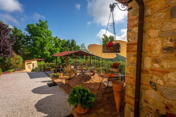 Altes restauriertes Bauernhaus mit Panoramablick mit 8 Zimmern und Schwimmbad, Garten und Land zu verkaufen in der Nähe von Chianni, Pisa. In dominanter Lage inmitten der sanften Hügel der pisanischen Landschaft befindet sich dieses wunderschön restaurierte, 355 Quadratmeter große alte Bauernhaus nur wenige Minuten von Chianni und etwa dreißig Minuten von den Stränden des Tyrrhenischen Meeres und Castiglioncello entfernt. Umgeben von einer großzügigen, unberührten Natur, bietet es einen freien Blick auf die toskanische Landschaft, zwischen Wäldern, Olivenhainen und stillen Tälern. Das alte Bauernhaus wurde unter Verwendung traditioneller Materialien wie Stein, Holz und Terrakotta restauriert, so dass die Authentizität und die Wärme der Häuser von einst erhalten blieben. Auf drei Ebenen verteilt, beherbergt das Bauernhaus einen geräumigen und hellen Wohnbereich mit Kamin, eine gemütliche Küche, eine Waschküche, sieben Schlafzimmer, alle mit eigenem Bad, einige mit eigenem Eingang, und einen Abstellraum. Das Anwesen wird durch zwei Nebengebäude vervollständigt: ein ca. 35 m² großes Gästehaus auf zwei Ebenen mit einem Schlafzimmer und einem Bad im Erdgeschoss und einer Garage im Untergeschoss sowie ein Gebäude mit einem 10 m² großen Holzofen und einem 15 m² großen Lager mit ausgestatteter Küche, ideal für gesellige Abendessen im Freien. Das Bauernhaus liegt inmitten von 2,8 Hektar Land, darunter 1,4 Hektar Privatwald, ein Obstgarten mit jahrhundertealten Olivenbäumen und ein gepflegter Garten mit einem 12 x 5 Meter großen Panoramaschwimmbad mit Natursteinsolarium und Technikraum. Dieses Anwesen, das heute als privater Wohnsitz mit Touristenunterkünften genutzt wird, stellt die perfekte Verbindung von zeitgenössischem Komfort, toskanischer Tradition und einem Lebensstil inmitten der Natur dar. Ideal, um es mit Familie und Freunden zu teilen oder als charmantes Ferienhaus in einer der authentischsten Gegenden der Toskana zu verwalten.