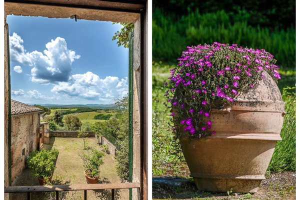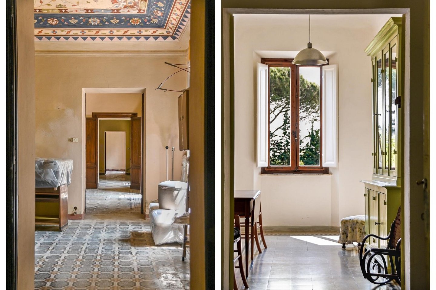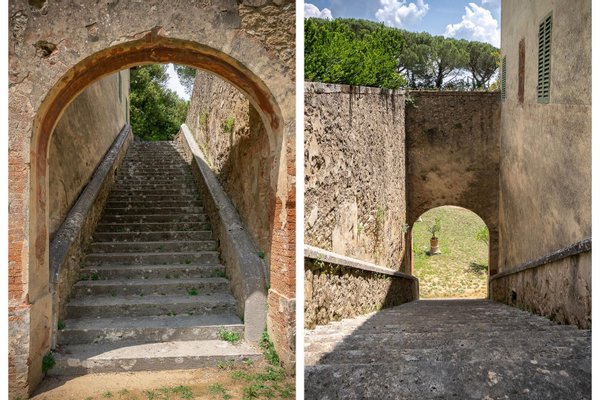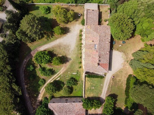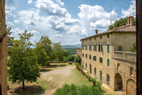 Typ: Landgut aus dem Jahr 1600 mit herrschaftlicher Villa von ca. 1700 Quadratmetern auf vier Etagen mit Park, plus Haus des Hausmeisters und einem alten Getreidespeicher, 36 Hektar Land mit Weinberg und Olivenhain, auf dem Land von Siena