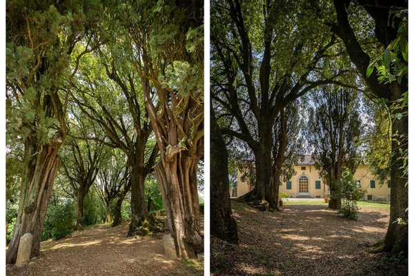 Antikes Anwesen mit Villa, privater Kapelle, jahrhundertealtem Park, Olivenhain, Weinberg und spektakulärem Panoramablick auf Siena und den Torre del Mangia, zu verkaufen in Siena. Vor den Toren der Stadt, mit Blick auf die sanften Hügel der sienesischen Landschaft, umgeben von einem über 36 Hektar großen Park mit jahrhundertealten Wäldern, Olivenhain und Merlot-Weinberg, ist Villa Casin de' Nobili eine charmante Residenz, die in den 1600er Jahren als Jagdhaus für eine adlige sienesische Familie gebaut wurde. Eine Zypressenallee führt zum Haupteingang auf der Südseite mit einem großen Gartenhof und einem Belvedere: Es ist groß und stattlich mit seinen vier oberirdischen Stockwerken und einer Steinstruktur mit Rizaffo-Finish, einem Walmdach mit der traditionellen Dacheindeckung aus Ziegeln und Kacheln. An der Nordecke ist eine kleine Privatkapelle in das Hauptgebäude integriert, aus der sich ein kleiner Glockenturm erhebt. Das Foyer im Erdgeschoss ist ein eleganter Raum mit einem Säulengang und einer majestätischen steinernen und schmiedeeisernen Treppe, die entlang des Mittelteils verläuft und die oberen Stockwerke miteinander verbindet und von einem großen Oberlicht auf dem Dach beleuchtet wird. Das Hauptgeschoss im Erdgeschoss bietet vier elegante Salons mit Blick auf den Garten und Decken mit dekorativen Elementen aus dem frühen 20. Jahrhundert, während der nördliche Teil den alten Küchen und Kellern gewidmet ist: ein spektakulärer unterirdischer Gang mit Gewölben und Wänden aus Stein und Sichtziegeln. Im Hochparterre befinden sich ein zentraler Korridor, sechs Schlafzimmer, ein Arbeitszimmer, eine Garderobe und Bäder. In der zweiten Etage, die in allen Zimmern viel natürliches Licht bietet, mit Blick auf den Garten und einen Panoramablick auf die Stadt Siena, befindet sich eine renovierte Wohnung mit vier Schlafzimmern und drei Wohnzimmern, Küche und Zugang zum Park auf der Rückseite. Das Dachgeschoss, das heute noch als Dachboden genutzt wird, hat eine ausgezeichnete Höhe und charakteristische Holzbalkendecken und bietet ein hervorragendes Ausbaupotenzial. Das Hausmeisterhaus mit angeschlossenem Gewächshaus mit Wintergarten und Zugang zum Innenhof bietet einen herrlichen Blick auf das Belvedere und die Landschaft. Der Getreidespeicher ist ein imposanter Steinbau auf zwei Ebenen mit Blick auf den Innenhof und den Garten, mit großen offenen Räumen und einer Höhe von über 5 Metern, die umgebaut werden können. Dank ihrer strategischen Lage auf dem Lande, nur 4 km vom historischen Zentrum von Siena entfernt, ist die Villa Casin de' Nobili, obwohl sie sich nicht in einem völlig isolierten Gebiet befindet, eine prestigeträchtige Residenz, die sich sowohl für Privatwohnungen als auch für touristische Unterkünfte eignet. Sie verfügt über ein Potenzial von mehr als 30 Zimmern und Suiten, ideal für die Ausrichtung von Veranstaltungen und die Feier besonderer Momente im großen Park, in den historischen Sälen, in den alten Kellern und in der privaten Kapelle, die noch immer für Hochzeiten, Taufen und Familienjubiläen genutzt wird.