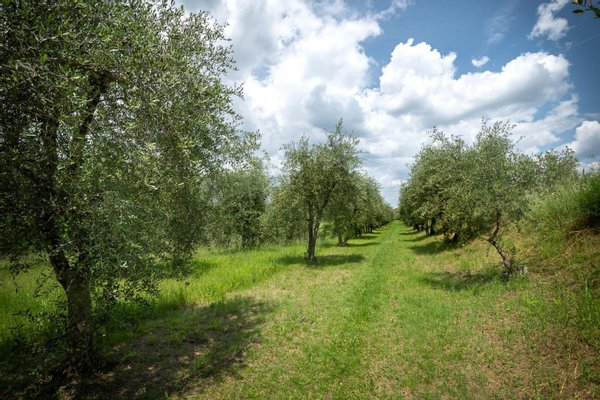 Land: ca. 36 Hektar, davon 3 ha Olivenhain mit ca. 400 Bäumen, ca. 27 ha Ackerland, 2,3 ha Weinberg mit Merlot-Reben, IGT Toscana, und Pflanzrechte für weitere 1,6 ha