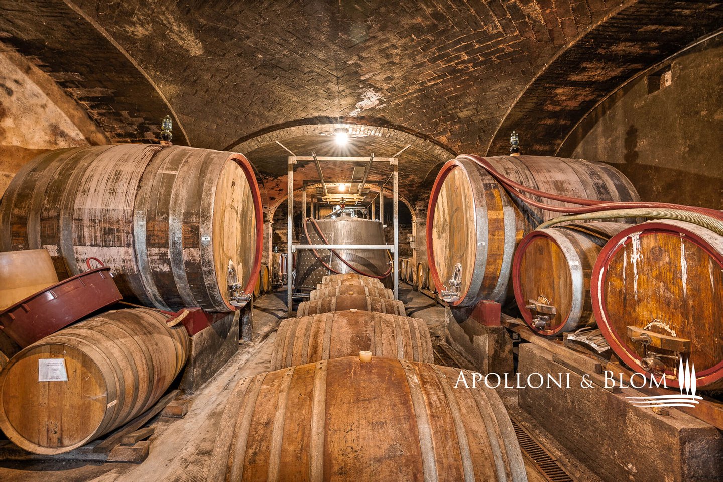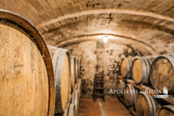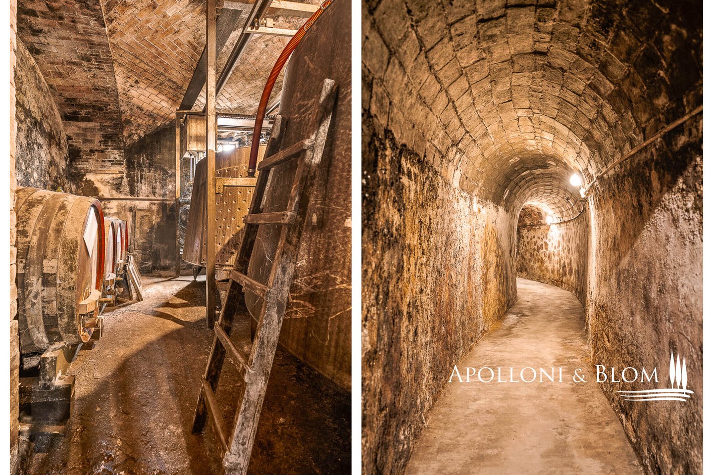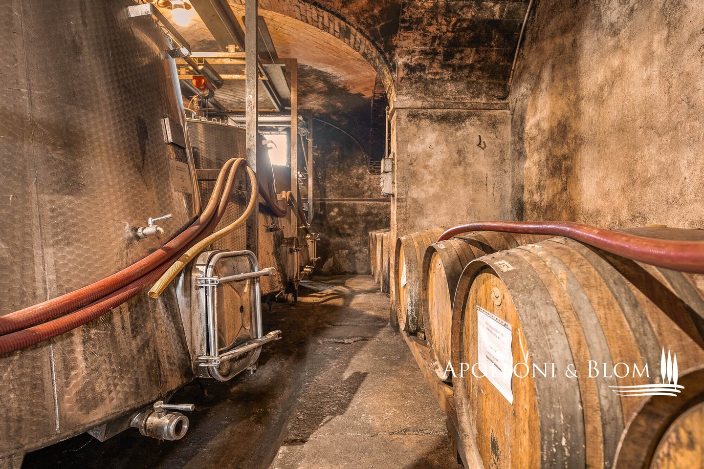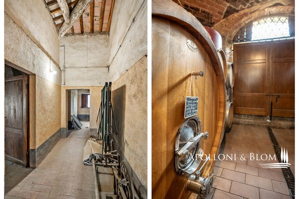 Erdgeschoss: 2 Räume mit Stahltanks und Holzfässern, doppelter Außenzugang, Tunnel und Zugang zur Höhle der Villa