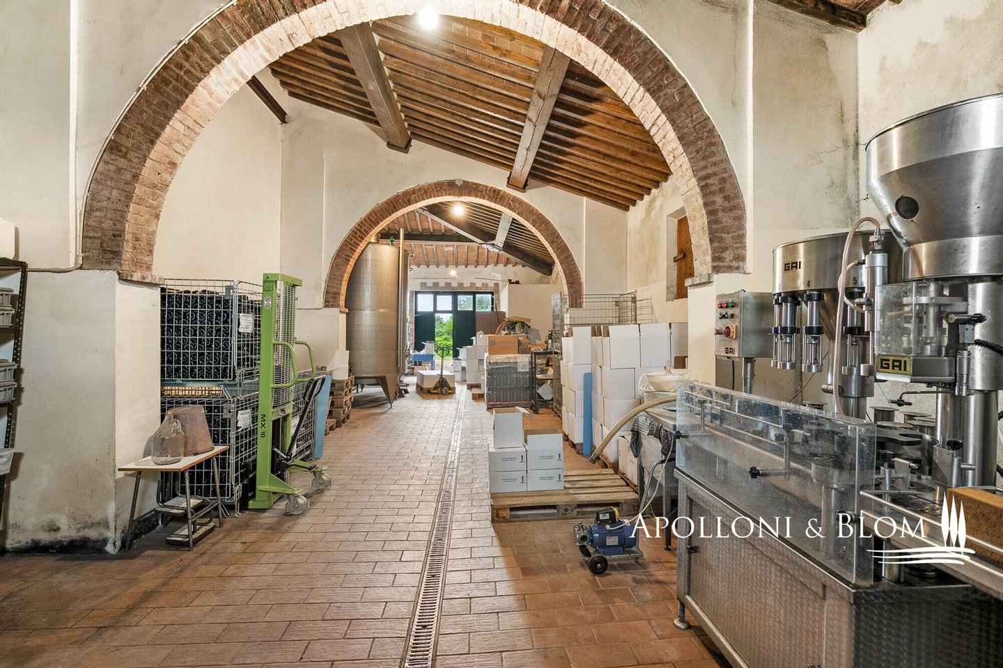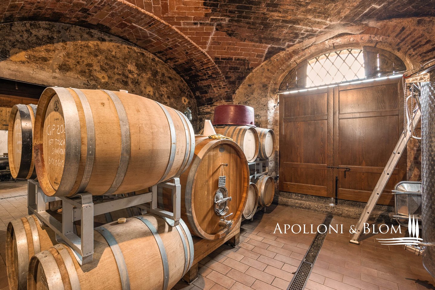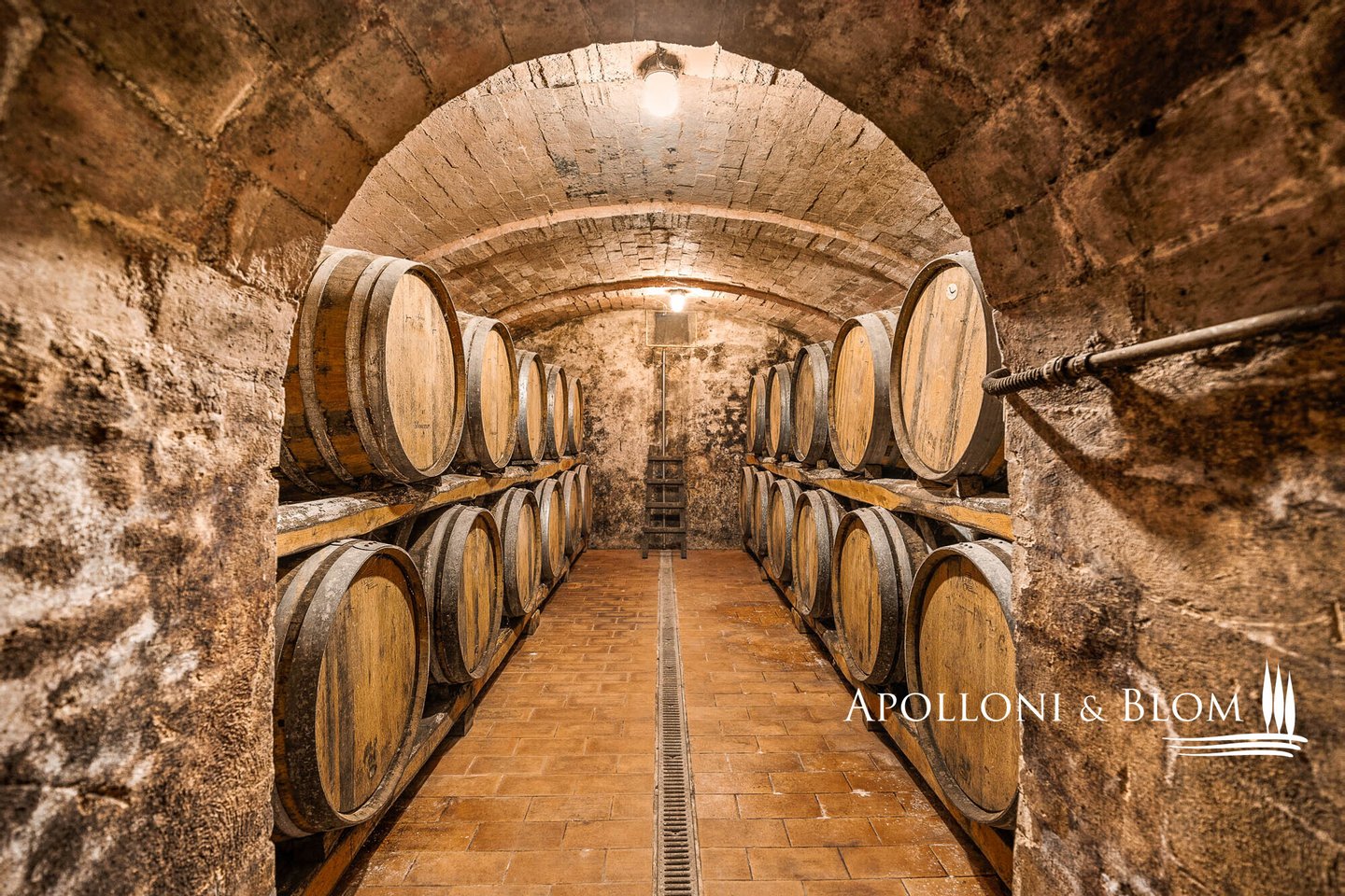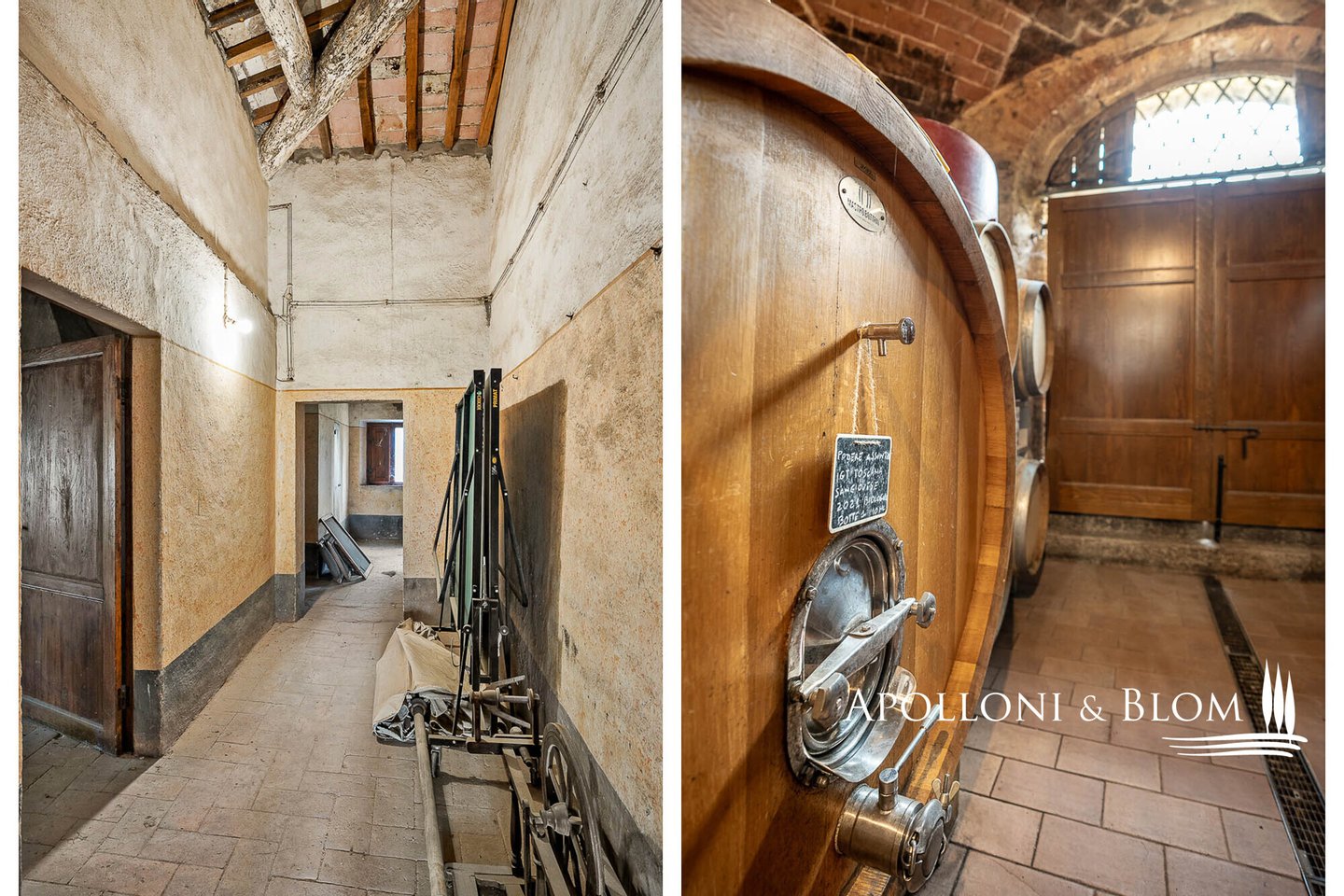 Erdgeschoss: 2 Räume mit Stahltanks und Holzfässern, doppelter Außenzugang, Tunnel und Zugang zur Höhle der Villa