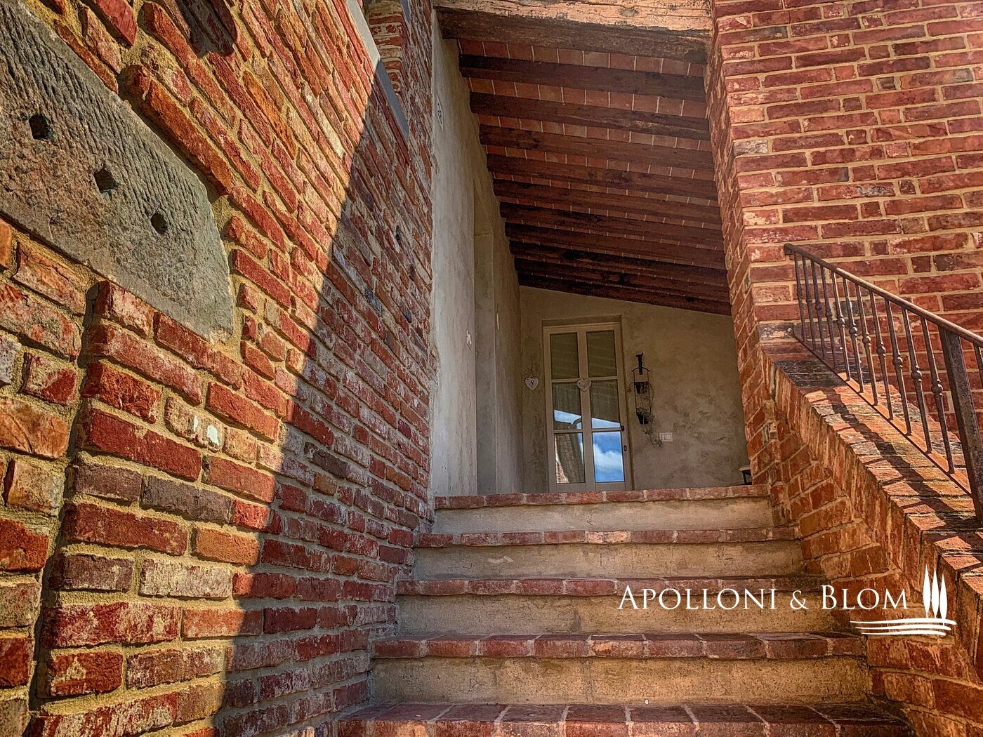Sechzehnten Jahrhundert Bauernhaus mit Backsteinfassaden, gewölbte Loggia, renoviert mit neun Einheiten, Schwimmbad zu verkaufen in Foiano della Chiana, Arezzo. Das aus der Restaurierung eines Gebäudes aus dem Jahr 1500 stammende Casale Il Mattone