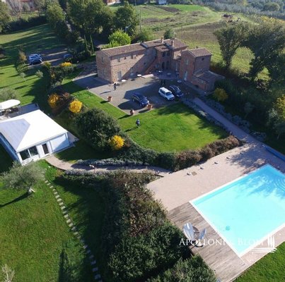 Typ: Bauernhaus auf drei Ebenen von 600 m², umstrukturiert in 9 Einheiten mit insgesamt 13 Zimmern und Agritourismus-Lizenz, Schwimmbad, Außen-Whirlpool, Gartenpark und landwirtschaftliche Flächen