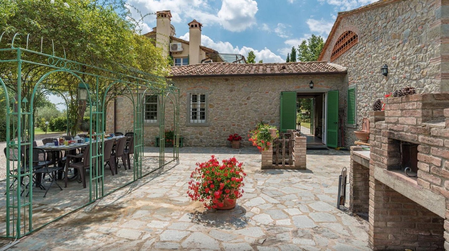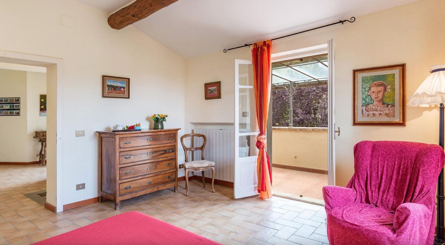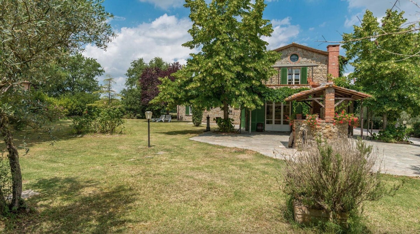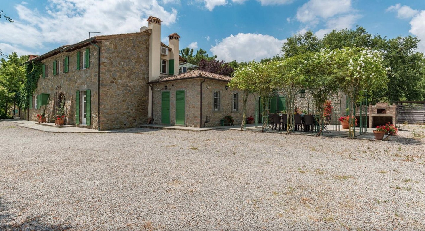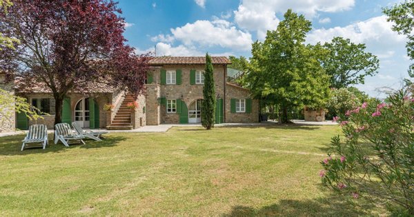 Elegant restauriertes Bauernhaus aus Stein in Villa mit sechs Zimmern und Schwimmbad, zu verkaufen in der Landschaft vor Cortona, Arezzo. Im Herzen des Valdichiana, an der Grenze zwischen der Toskana und Umbrien, zwanzig Minuten vom Trasimenischen See und Montepulciano entfernt, in einem flachen und privaten Bereich, leicht erreichbar über eine kurze Strecke von unbefestigten Straße, liegt Casale La Bellezza, so genannt für die Authentizität und Eleganz seiner Materialien. Anfang des 19. Jahrhunderts aus Stein erbaut, wurde es 2010 aufwändig renoviert, wodurch eine gemütliche und familiäre Atmosphäre geschaffen wurde, voller Charme und historischer Elemente, die sich im Steinkamin im Wohnzimmer und im rustikalen Kamin in der Küche, in den Decken mit freiliegenden Holzbalken, in den Steinwänden und Terrakottaböden wiederfinden. Die Fenster und Türen wurden alle komplett durch Thermotüren und -fenster ersetzt und passen perfekt zu den Außentüren aus Holz in der traditionellen salbeigrünen Farbe. Im Erdgeschoss befinden sich drei Schlafzimmer mit eigenem Bad, während sich im ersten Stock, der über eine Steintreppe zu erreichen ist, ein Hauptschlafzimmer mit Bad und Terrasse, zwei Schlafzimmer und ein Bad befinden. Der Garten wurde mit Rasenflächen, Blumenbeeten, Olivenbäumen, Pinien und hohen Bäumen angelegt, und es gibt einen Swimmingpool mit einer Treppe im römischen Stil und Steinverkleidung. Heute wird Casale La Bellezza von Reisenden aus aller Welt für ihren Urlaub gewählt, ein spektakulärer Ort, um sich zu entspannen und zu erholen, aber auch perfekt als privater Wohnsitz, um mit Familie und Freunden zu leben.