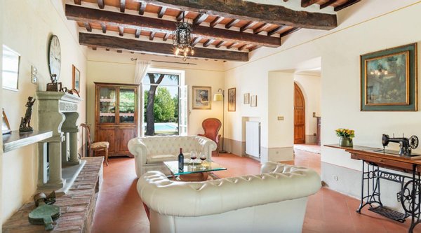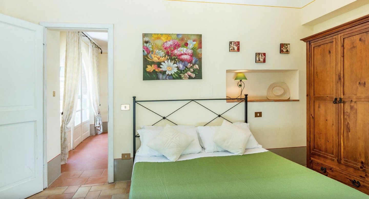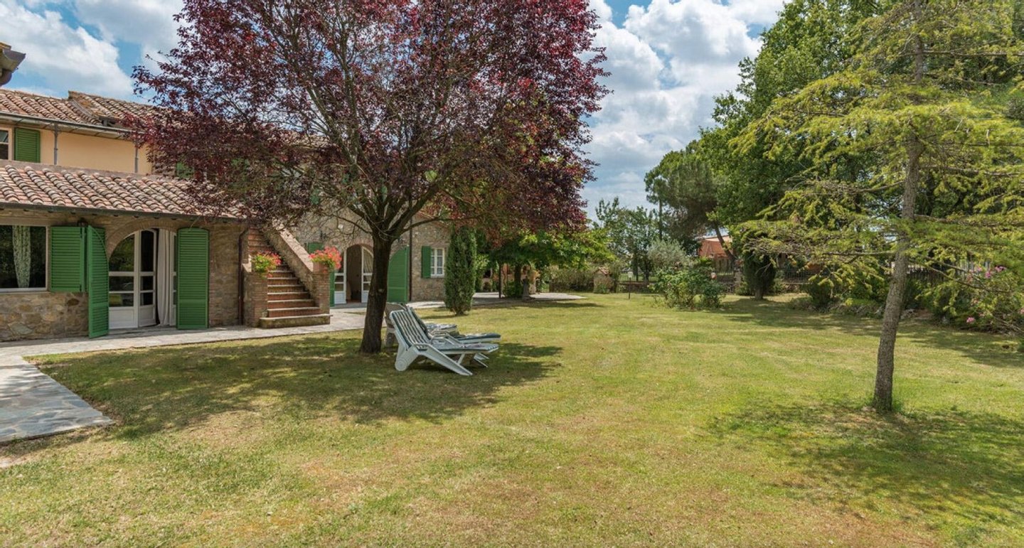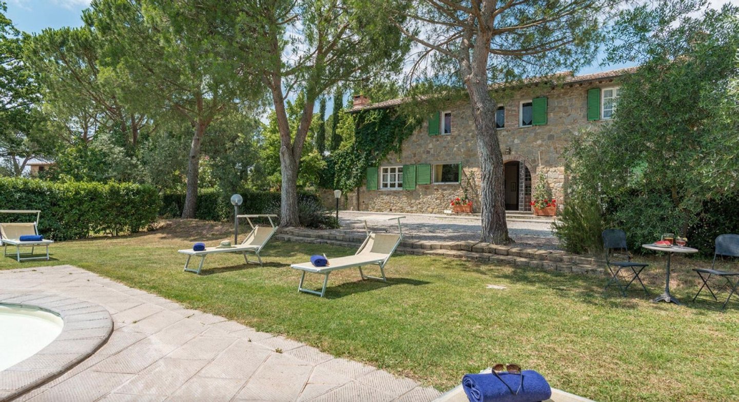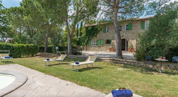 Elegant restauriertes Bauernhaus aus Stein in Villa mit sechs Zimmern und Schwimmbad, zu verkaufen in der Landschaft vor Cortona, Arezzo. Im Herzen des Valdichiana, an der Grenze zwischen der Toskana und Umbrien, zwanzig Minuten vom Trasimenischen See und Montepulciano entfernt, in einem flachen und privaten Bereich, leicht erreichbar über eine kurze Strecke von unbefestigten Straße, liegt Casale La Bellezza, so genannt für die Authentizität und Eleganz seiner Materialien. Anfang des 19. Jahrhunderts aus Stein erbaut, wurde es 2010 aufwändig renoviert, wodurch eine gemütliche und familiäre Atmosphäre geschaffen wurde, voller Charme und historischer Elemente, die sich im Steinkamin im Wohnzimmer und im rustikalen Kamin in der Küche, in den Decken mit freiliegenden Holzbalken, in den Steinwänden und Terrakottaböden wiederfinden. Die Fenster und Türen wurden alle komplett durch Thermotüren und -fenster ersetzt und passen perfekt zu den Außentüren aus Holz in der traditionellen salbeigrünen Farbe. Im Erdgeschoss befinden sich drei Schlafzimmer mit eigenem Bad, während sich im ersten Stock, der über eine Steintreppe zu erreichen ist, ein Hauptschlafzimmer mit Bad und Terrasse, zwei Schlafzimmer und ein Bad befinden. Der Garten wurde mit Rasenflächen, Blumenbeeten, Olivenbäumen, Pinien und hohen Bäumen angelegt, und es gibt einen Swimmingpool mit einer Treppe im römischen Stil und Steinverkleidung. Heute wird Casale La Bellezza von Reisenden aus aller Welt für ihren Urlaub gewählt, ein spektakulärer Ort, um sich zu entspannen und zu erholen, aber auch perfekt als privater Wohnsitz, um mit Familie und Freunden zu leben.