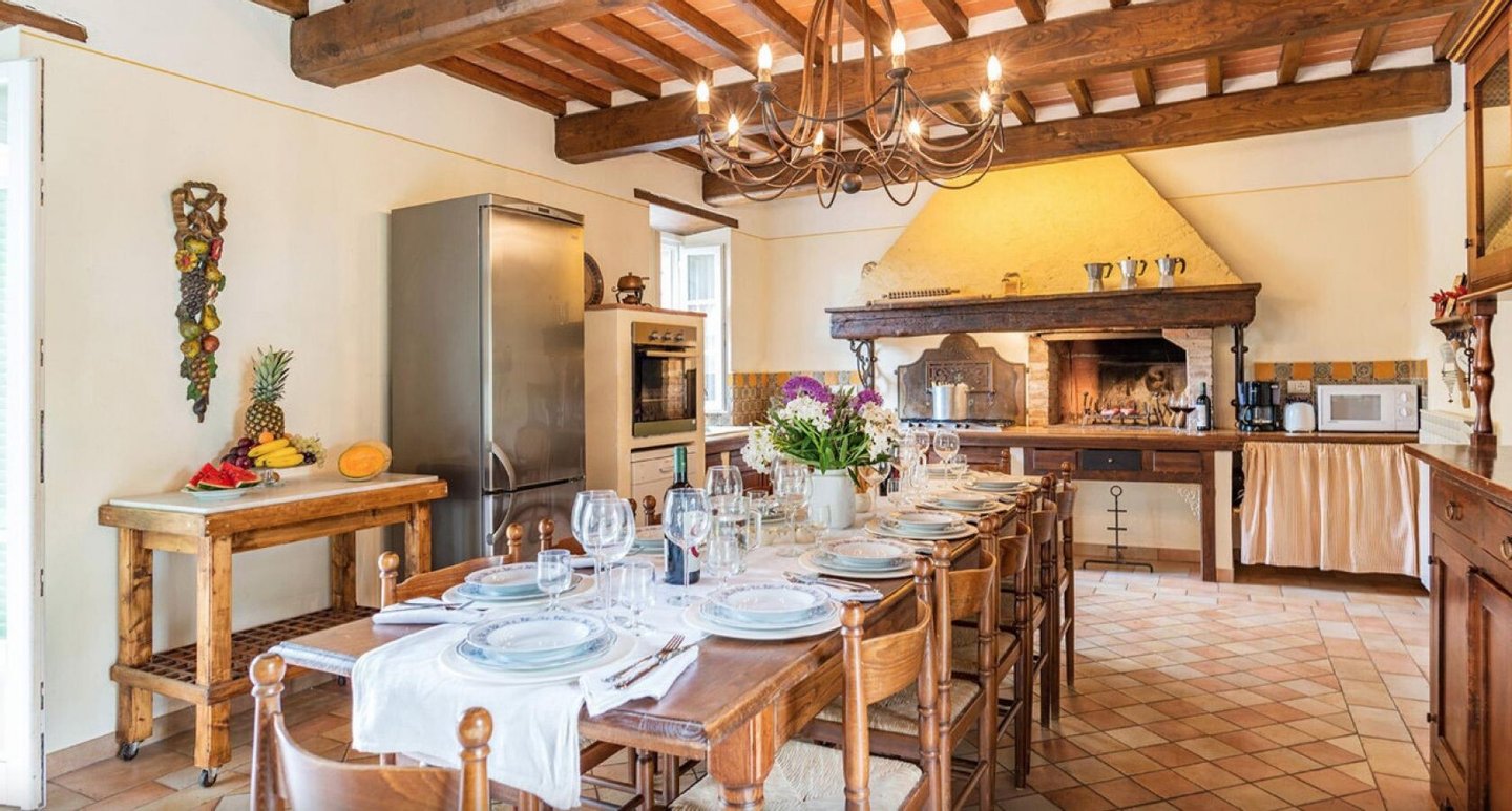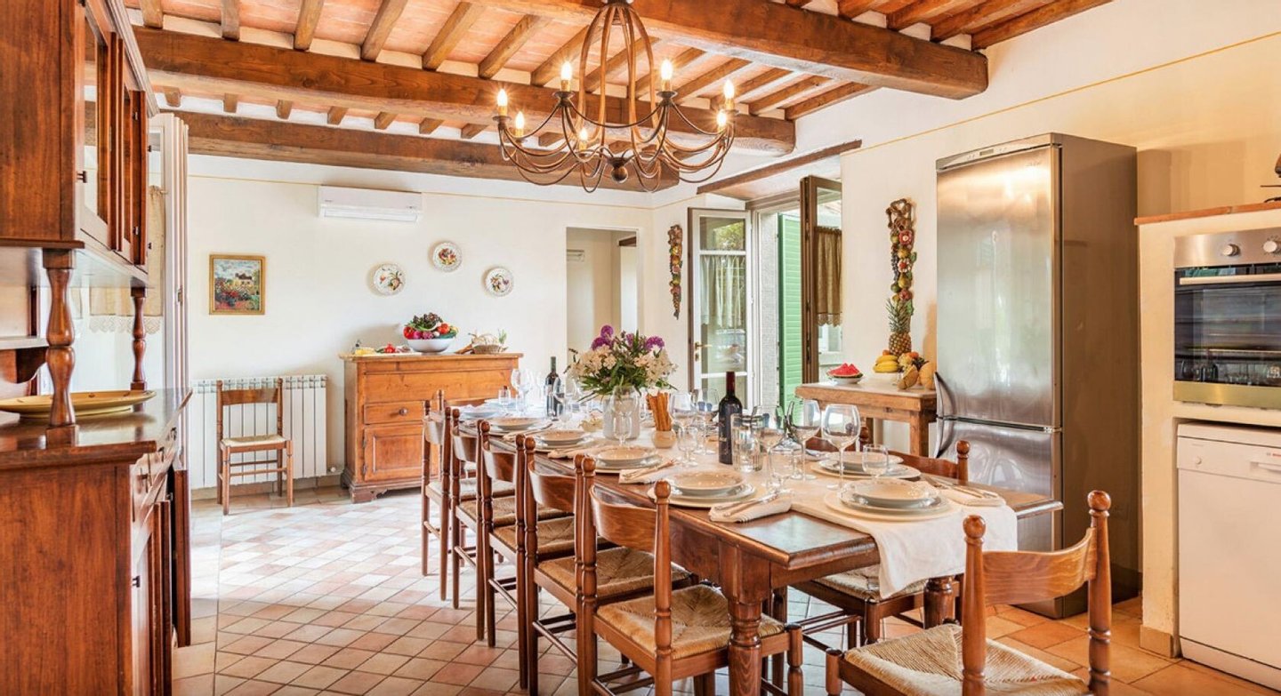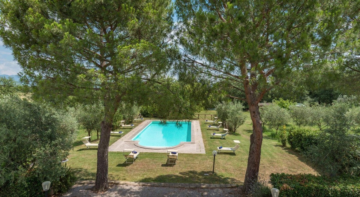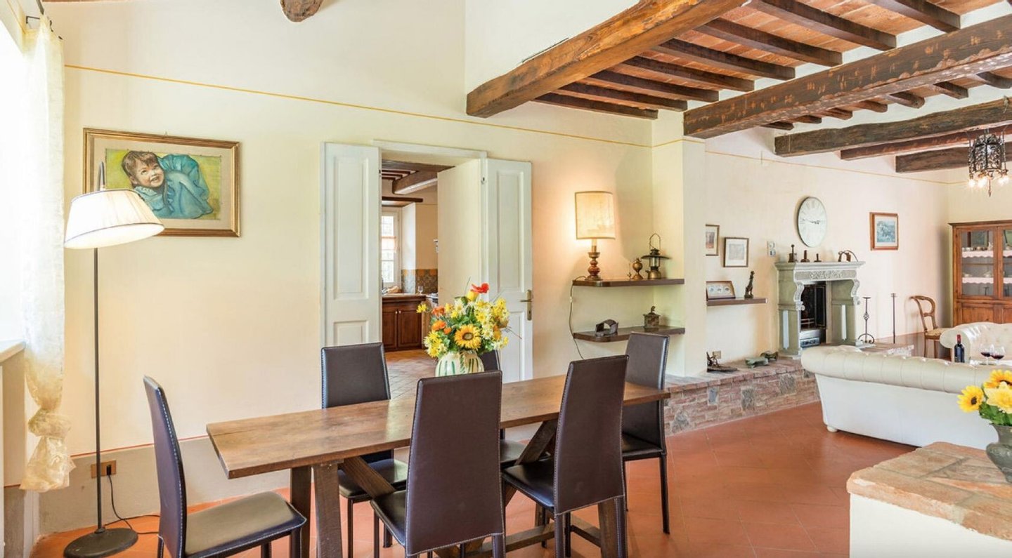 Elegant restauriertes Bauernhaus aus Stein in Villa mit sechs Zimmern und Schwimmbad, zu verkaufen in der Landschaft vor Cortona, Arezzo. Im Herzen des Valdichiana, an der Grenze zwischen der Toskana und Umbrien, zwanzig Minuten vom Trasimenischen See und Montepulciano entfernt, in einem flachen und privaten Bereich, leicht erreichbar über eine kurze Strecke von unbefestigten Straße, liegt Casale La Bellezza, so genannt für die Authentizität und Eleganz seiner Materialien. Anfang des 19. Jahrhunderts aus Stein erbaut, wurde es 2010 aufwändig renoviert, wodurch eine gemütliche und familiäre Atmosphäre geschaffen wurde, voller Charme und historischer Elemente, die sich im Steinkamin im Wohnzimmer und im rustikalen Kamin in der Küche, in den Decken mit freiliegenden Holzbalken, in den Steinwänden und Terrakottaböden wiederfinden. Die Fenster und Türen wurden alle komplett durch Thermotüren und -fenster ersetzt und passen perfekt zu den Außentüren aus Holz in der traditionellen salbeigrünen Farbe. Im Erdgeschoss befinden sich drei Schlafzimmer mit eigenem Bad, während sich im ersten Stock, der über eine Steintreppe zu erreichen ist, ein Hauptschlafzimmer mit Bad und Terrasse, zwei Schlafzimmer und ein Bad befinden. Der Garten wurde mit Rasenflächen, Blumenbeeten, Olivenbäumen, Pinien und hohen Bäumen angelegt, und es gibt einen Swimmingpool mit einer Treppe im römischen Stil und Steinverkleidung. Heute wird Casale La Bellezza von Reisenden aus aller Welt für ihren Urlaub gewählt, ein spektakulärer Ort, um sich zu entspannen und zu erholen, aber auch perfekt als privater Wohnsitz, um mit Familie und Freunden zu leben.