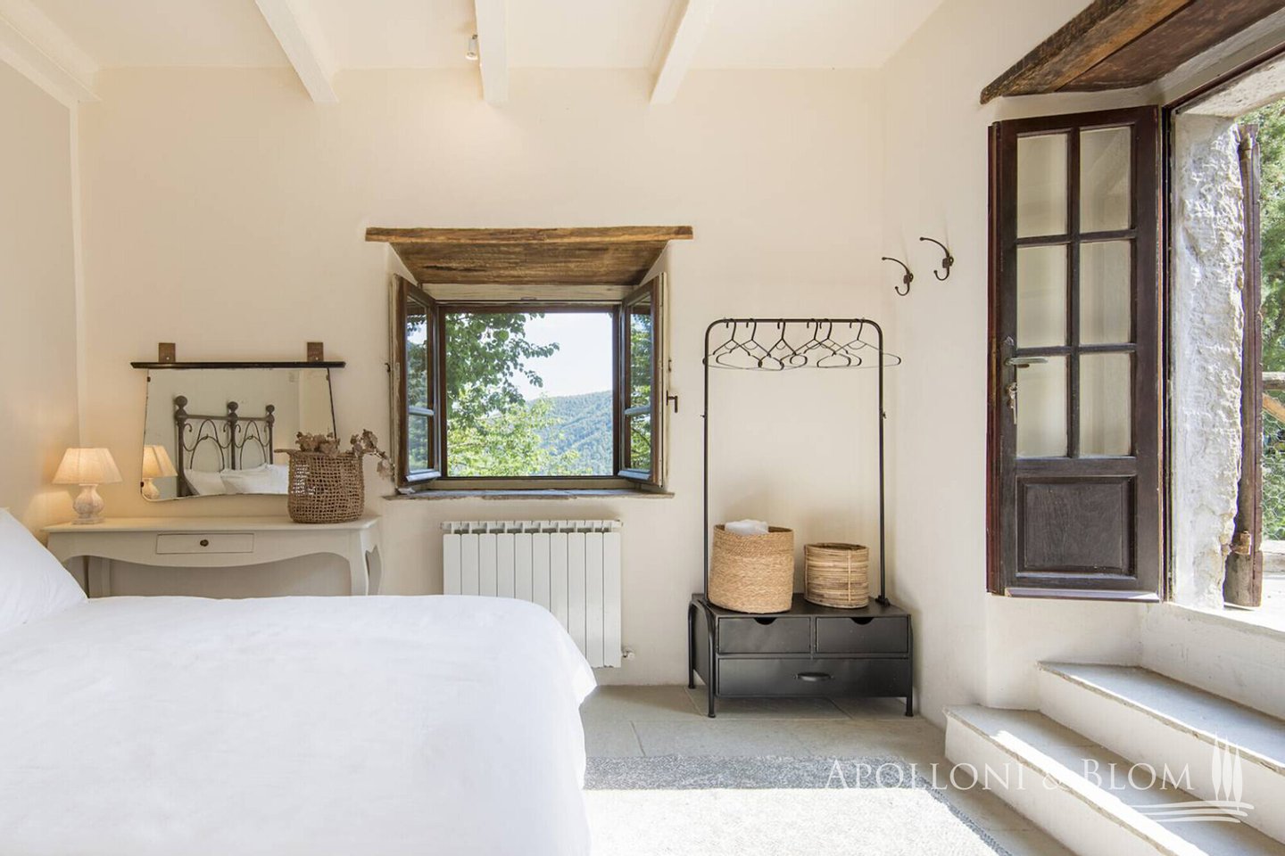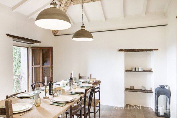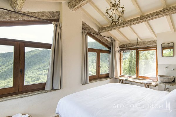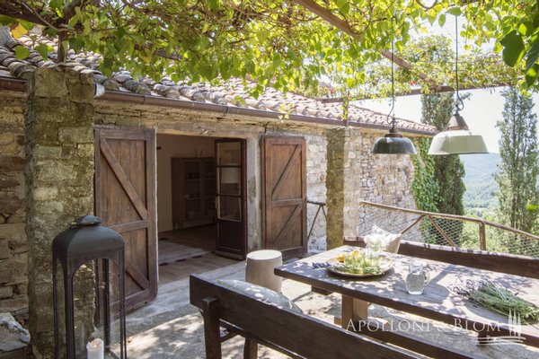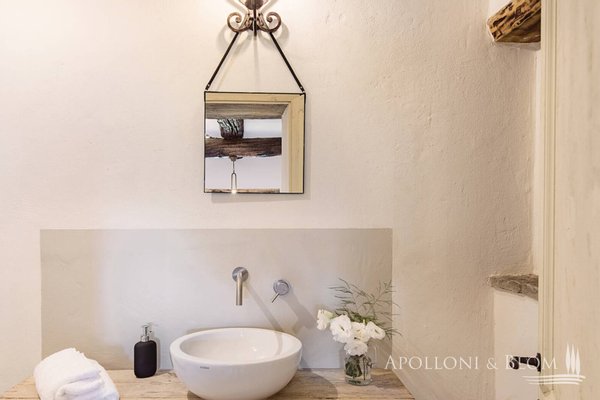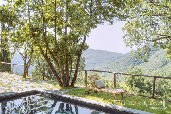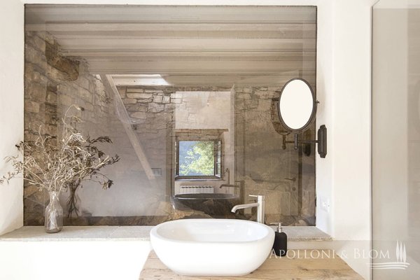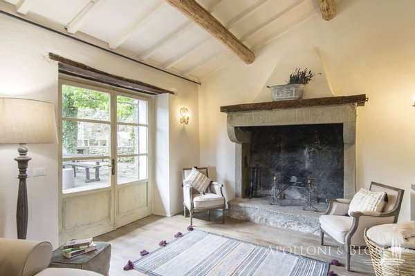 1,7 Hektar großer Park, Weiler mit Landhaus und sechs Zimmern, Schwimmbad, ehemalige Scheune, zu restaurierendes Türmchen in der Nähe von Cortona, Arezzo zu verkaufen. In einer unvergleichlichen Lage an der toskanisch-umbrischen Grenze, 20 km östlich von Cortona und nur 8 km vom Trasimeno-See entfernt, führt eine unbefestigte Straße durch offene Felder und Wälder nach Borghetto di Pierle in dominierender Lage und völlig in die Natur eingetaucht, aber nur wenige Minuten von Geschäften und Dienstleistungen entfernt. Das Haus wurde 2020 teilweise restauriert und empfängt seine Gäste in einem romantischen Garten, in dem sich in einer abgelegenen Ecke ein mit Steinen verkleidetes Schwimmbad mit beheiztem Salzwasser befindet. Hoch oben, etwas abseits des Dorfes, erhebt sich ein dreistöckiges Türmchen mit bezaubernder Aussicht, das interessante Möglichkeiten für eine Suite oder ein Studio bietet. Das Hauptgebäude ist über eine Treppe im Garten zu erreichen und ist eine dreistöckige Landvilla mit unvollendeten Steinfassaden, die tadellos restauriert wurde und eine entspannende, rustikale Atmosphäre bietet, Wohnbereiche mit Sälen und Salons, die perfekt miteinander verbunden sind, direkter Zugang zu den Terrassen mit Pergola und Holzofen, Innenausbau mit Holzböden, Steinkaminen, hohen, geweißten Holzdecken, vier Schlafzimmern, zwei im ersten und zwei im unteren Stockwerk, Bäder mit Natursteinfliesen und moderner Einrichtung, Klimaanlage in allen Räumen. Ebenfalls im Untergeschoss befinden sich eine Waschküche und ein Technikraum mit Pflanzenraum. Gegenüber dem Haupthaus befindet sich ein zweistöckiges, teilweise restauriertes Nebengebäude für Gäste mit einem Wohnzimmer mit Kamin, Natursteinböden, zwei Schlafzimmern und zwei Bädern. In der unteren Etage befinden sich zwei rustikale Räume mit Steinwänden, die als Lagerräume genutzt werden, die umgebaut und wiederhergestellt werden sollen. Ein Vorhof führt zu einem zweiten Nebengebäude, einer ehemaligen Scheune mit großen Höhen und Decken mit freiliegenden Holzbindern, Glasfenstern auf dem Innenhof, einem typischen Reifenfenster auf einem Panoramabalkon, wurde als Wohnbereich mit Kamin gestaltet, der sowohl als Spielzimmer als auch als Yoga-/Pilates-Raum genutzt werden kann. Borghetto di Pierle liegt auf einem 1,7 Hektar großen Privatgrundstück mit Brunnen und Zisterne zum Sammeln von Regenwasser in einer wunderschönen natürlichen Umgebung und ist die perfekte Wahl für alle, die modernen Komfort mit der Authentizität des traditionellen Landhausstils verbinden möchten, zum Teil bezugsfertig und mit der Möglichkeit zur Erweiterung und individuellen Gestaltung durch Anbauten, die ergänzt/umgebaut werden können.