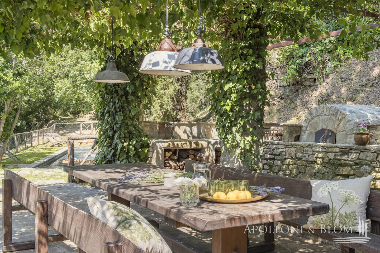 Typ: Traditioneller Bauernhof mit einer Gesamtfläche von 460 m², bestehend aus einer Steinvilla von 270 m² auf drei Etagen mit Pergola und wiederhergestelltem Holzofen mit 4 Zimmern, einem Gästeanbau mit 2/3 Zimmern, einer ehemaligen Scheune mit Wohn-/Spielbereich, einem wiederherzustellenden Turmgebäude, Garten mit beheiztem Salzwasser-Swimmingpool