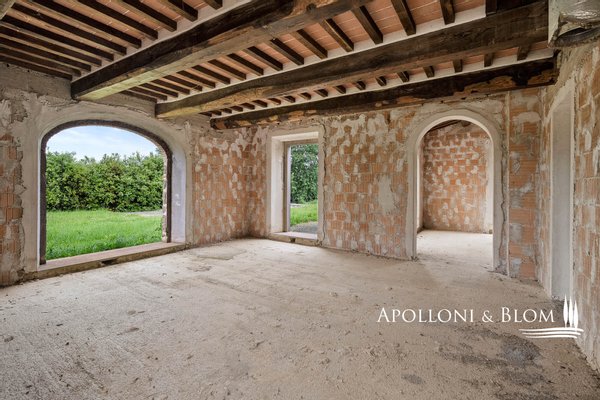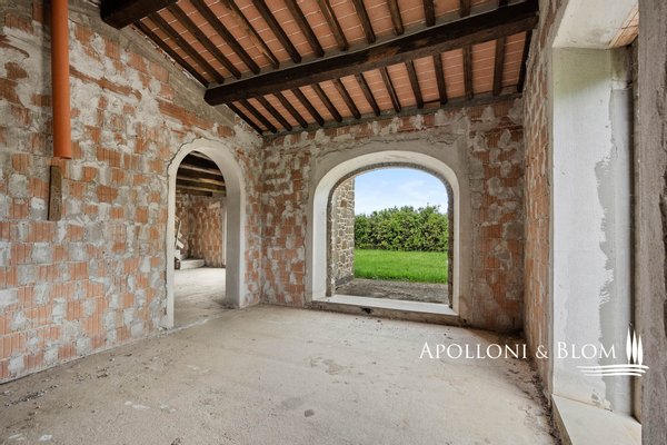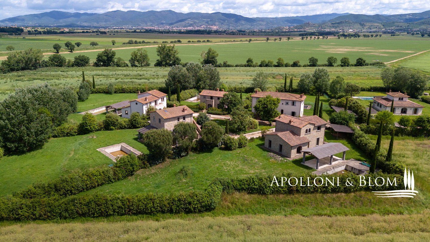 Dieses Bauernhaus aus Stein, das noch fertiggestellt und individuell gestaltet werden muss, steht in einem ländlichen Weiler oberhalb von Cortona zum Verkauf und ist ein geeignetes Projekt für eine Familie. Es befindet sich in einer außergewöhnlichen Lage in der toskanischen Landschaft des Val di Chiana, mit Blick auf die Stadt Cortona, inmitten von fünf weiteren Bauernhäusern im traditionellen Stil, die das Ergebnis der Restaurierung eines alten Anwesens der Cavalieri di Santo Stefano sind, das auf das Ende des 18. Borgo de' Cavalieri befindet sich auf einem vollständig eingezäunten, 2 Hektar großen Grundstück mit einem Gemeinschaftspark, einem eleganten Haupteingang mit Auffahrt und einem Parkplatz für Besucher. Das Bauernhaus "Il Granaio" ist ein klassisches Steingebäude mit gemauerten Bögen, Außentreppe und Säulengang, das früher zur Lagerung von Getreide diente. Es hat eine Fläche von ca. 190 Quadratmetern auf zwei Etagen mit der Möglichkeit von drei/vier Schlafzimmern, einen Garten auf vier Seiten, einen privaten Swimmingpool, einen überdachten Parkplatz, Aussicht und Privatsphäre. Im Rahmen des Sanierungsprojekts wurde das ursprüngliche Gebäude abgerissen und komplett neu aufgebaut, wobei hervorragende architektonische Techniken und modernste Materialien zum Einsatz kamen, die Wärmedämmung, Energieeffizienz und erdbebensichere Strukturen garantieren. Das Gebäude steht kurz vor der Fertigstellung; 80 % des gesamten Ausbaus sind bereits realisiert, so dass alle Innenräume und Ausstattungen noch individuell gestaltet werden müssen. Der Angebotspreis bezieht sich auf den unfertigen Zustand; ein Kostenvoranschlag für die schlüsselfertige Übergabe ist auf Anfrage erhältlich (schätzungsweise zwischen 200.000 und 300.000 €, die je nach den gewählten Ausstattungen und Materialien zum Grundpreis hinzukommen). Eines der sechs Objekte, COR2948 Casale de' Cavalieri, wurde bereits fertiggestellt und ist ein Beispiel für die hervorragende Ausstattung, die modernsten Installationen und die Klimaanlage in allen Räumen. Der Garten umgibt das Gebäude auf vier Seiten und verfügt über einen 40 Quadratmeter großen Pavillon für Mahlzeiten im Freien mit Blick auf den privaten Swimmingpool, der ebenfalls noch fertiggestellt werden soll. Zum Parken ist ein überdachter Carport mit zwei Stellplätzen vorgesehen. Ein Sicherheits- und Wartungsservice ist bereits vorhanden, der auf Wunsch auf einzelne Gebäude und Gärten ausgedehnt werden kann, sowie Unterstützung bei der Verwaltung der Immobilie und der touristischen Vermietung. Die Zufahrtsstraße zum Borgo de' Cavalieri ist eine typische Schotterstraße durch die toskanische Landschaft, etwa 300 Meter lang.