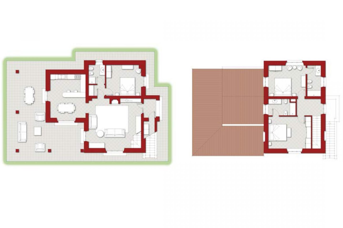 Erster Stock: 2 Doppelschlafzimmer mit eigenem Bad und eine Terrasse