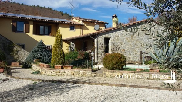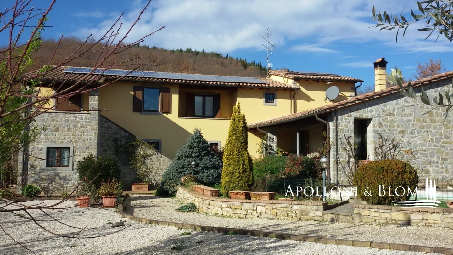 Villa mit Grundstück und Garten zu verkaufen in der Nähe von Lisciano Niccone. Eingebettet in das grüne Umbrien, ist die Villa auf zwei Etagen und besteht derzeit aus drei separaten Wohnungen. Die Hauptwohnung und zwei Wohnungen mit je einem Schlafzimmer könnten für Großfamilien genutzt werden, wobei jede Einheit ihre Privatsphäre behält. Die Hauptwohnung ist sehr schön, gut eingerichtet und gepflegt. Sie verfügt über zwei Arten von Zentralheizungen, Holz und Gas. Im Erdgeschoss gibt es zwei Esszimmer und ein Wohnzimmer mit Zugang zur Veranda, zwei Küchen, von denen eine auf die Veranda führt, zwei Schlafzimmer, drei Bäder und drei Abstellräume. Der erste Stock besteht aus einem Wohn-/Esszimmer, einer Küche, zwei Schlafzimmern, einem Arbeitszimmer mit Zugang zur Veranda, zwei Badezimmern und einem Abstellraum. Das Anwesen befindet sich in einer sehr ruhigen Gegend, nur wenige Kilometer von der Toskana entfernt und eignet sich hervorragend als Investition, um es touristisch zu vermarkten.