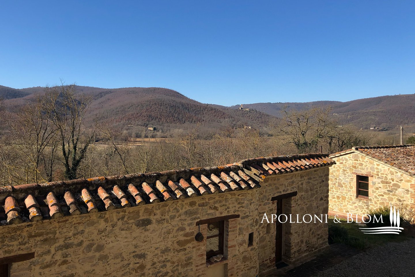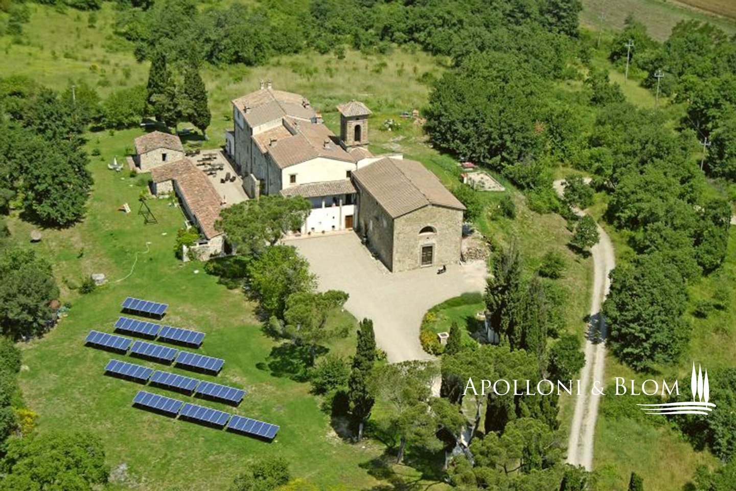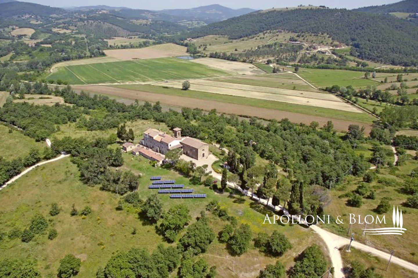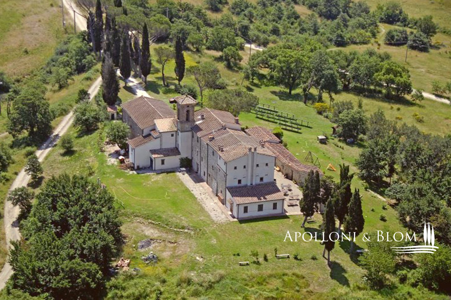 Dorf aus dem Jahr 1700 mit Land zu verkaufen in Passignano sul Trasimeno, Perugia. In einer Ecke des umbrischen Paradieses liegt dieser Immobilienkomplex von ca. 2890 m² brutto, umgeben von ca. 5,6 Hektar Land. Ein Teil des Anwesens wurde 2010 einer sorgfältigen Renovierung unterzogen, bei der die historischen Merkmale des Anwesens erhalten wurden, während ein Teil der Struktur renovierungs- und verbesserungsbedürftig ist. Das Anwesen befindet sich auf einem Hügel, in traumhafter Lage, umgeben von der grünen umbrischen Landschaft und zahlreichen Hundsrosensträuchern, die typisch für die lokale Vegetation sind. Zum Komplex gehören das Bauernhaus, die Tabaktrocknungsanlage, eine entweihte Kirche aus dem 18. Jahrhundert und landwirtschaftliche Nebengebäude. Das Anwesen wurde in der Vergangenheit als Unterkunft mit Restaurant genutzt. Ein ideales Anwesen für alle, die Ruhe und Frieden suchen, weit weg von der Hektik der Städte, mitten in der Natur, nur wenige Kilometer vom Trasimeno-See, dem schönen Perugia und den Dörfern Città della Pieve, Cetona, Sarteano, Chiusi und San Casciano dei Bagni entfernt.
