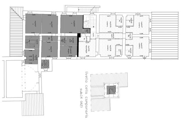 Obergeschoss: 4 Zimmer, die als Schlaf- oder Wohnzimmer genutzt werden können, 2 Bäder, weitere 4 Zimmer mit eigenem Bad, Dachgeschoss, Zimmer mit Wendeltreppe zum Glockenturm, Abstellraum